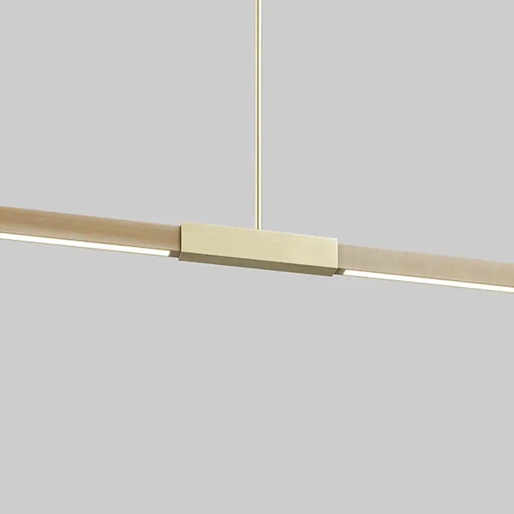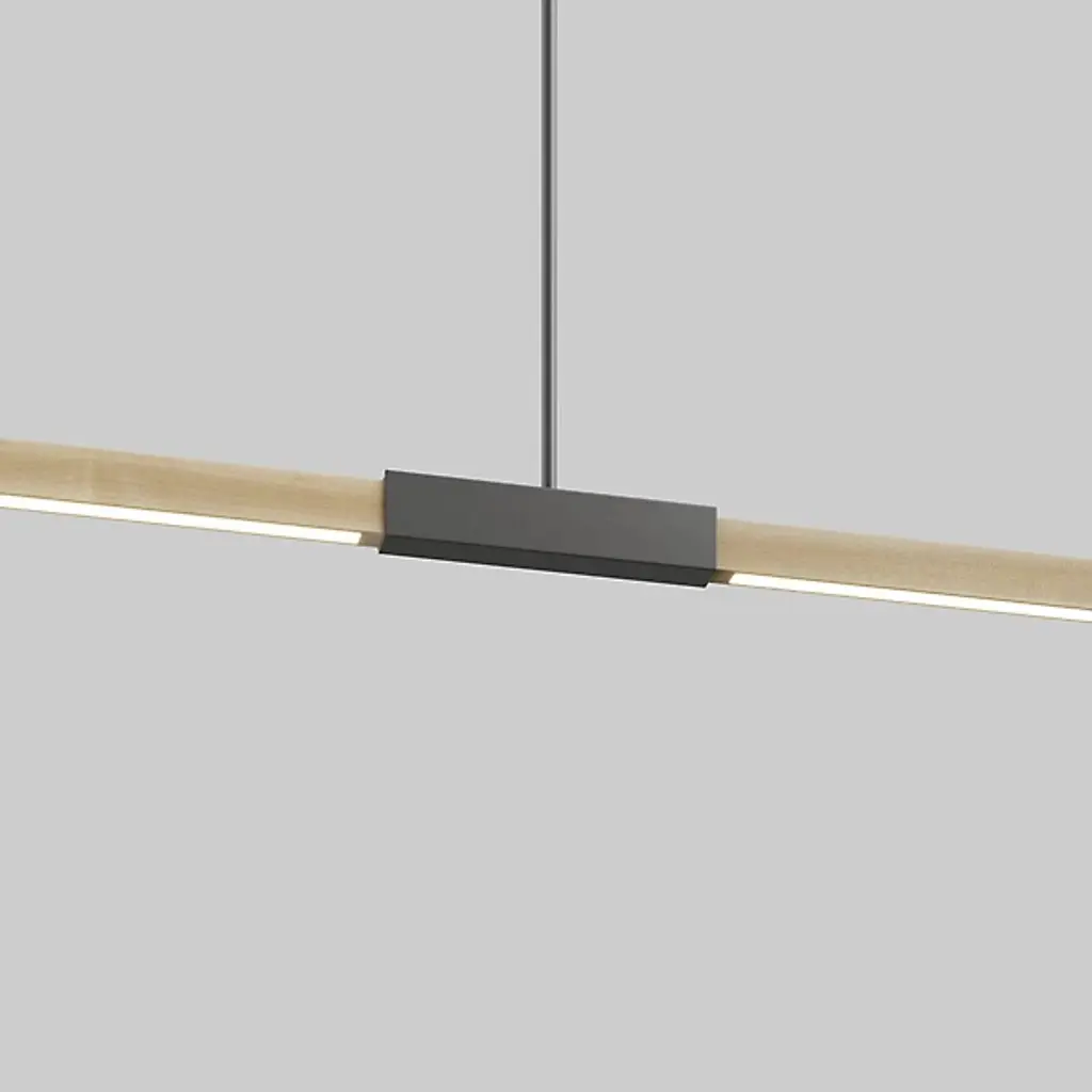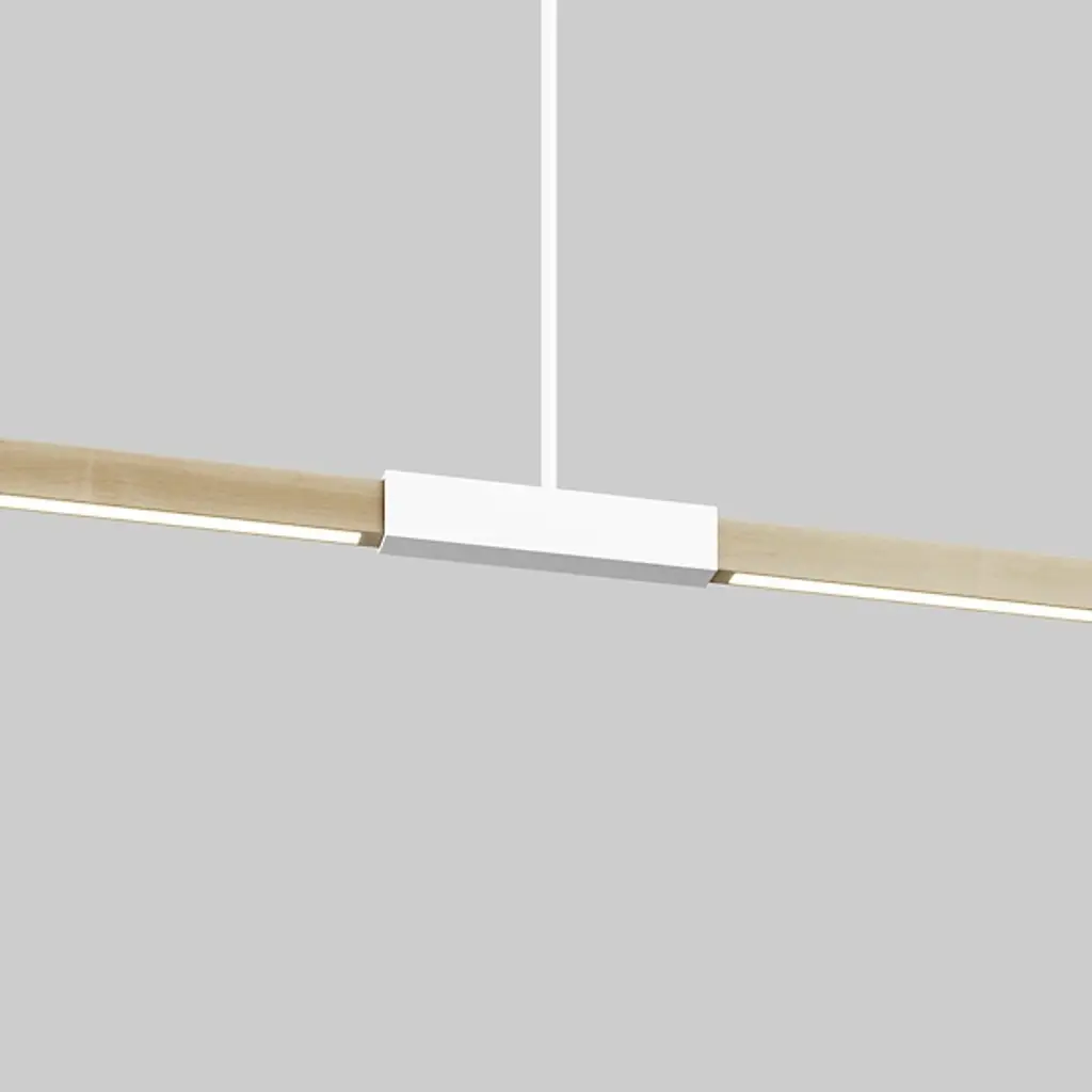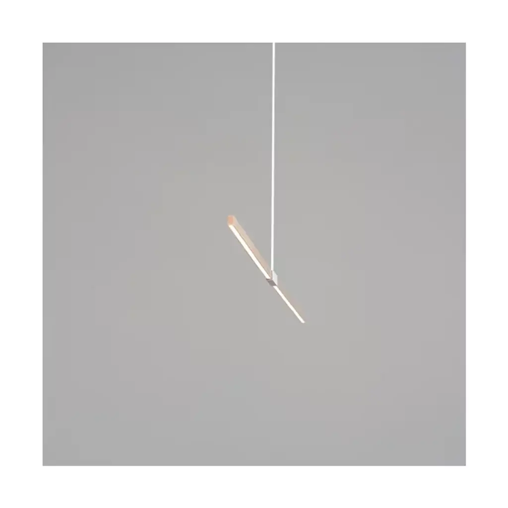 The 10 Foot LED Linear Pendant by Stickbulb is a simplistic and elegantly designed fixture for modern spaces. Suspended from a thin adjustable stem, a central clamping mechanism holds a slender wooden beam. Within the beam are two integrated energy-efficient LED lights that emit a softly diffused light. The metal clamp allows the beam to be oriented for ambient uplight or focused downlight for a customizable and adaptable lighting solution in a minimal and sustainably-sourced fixture.