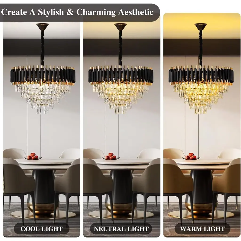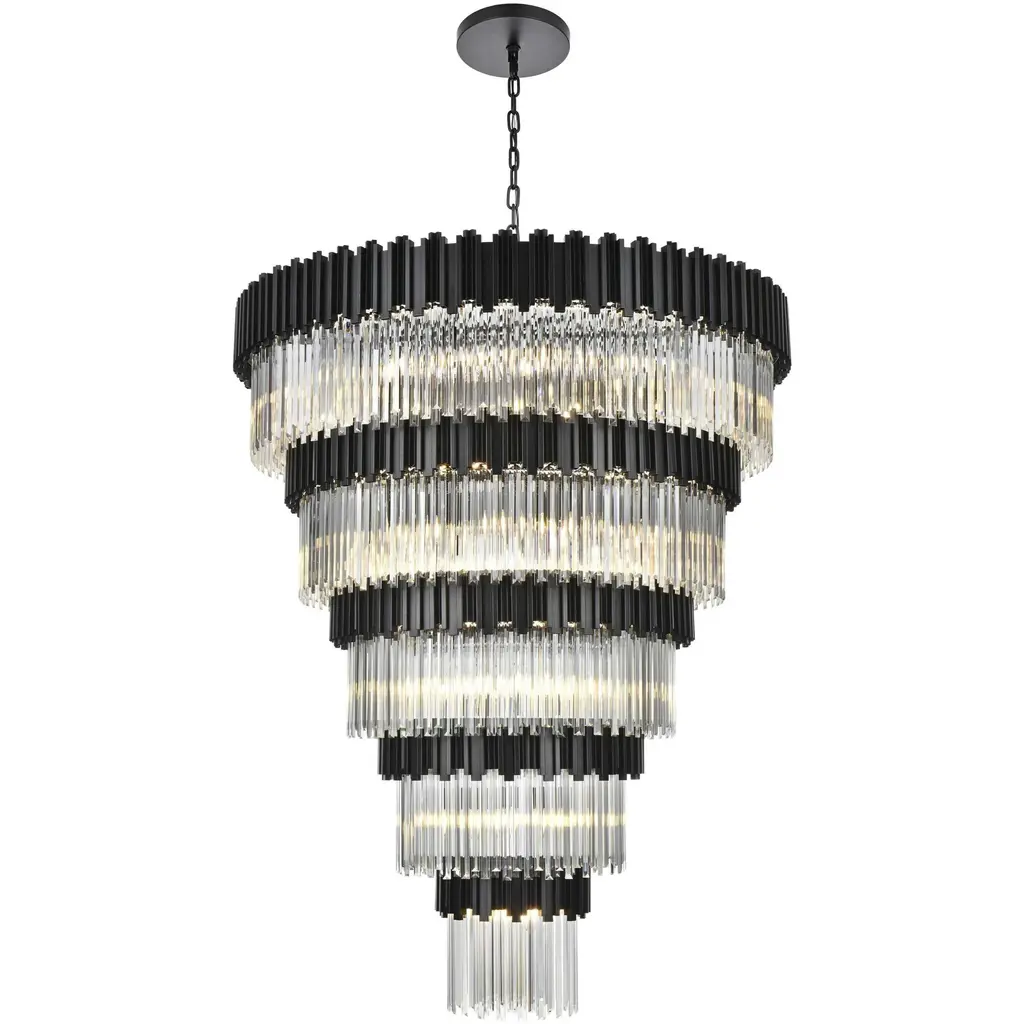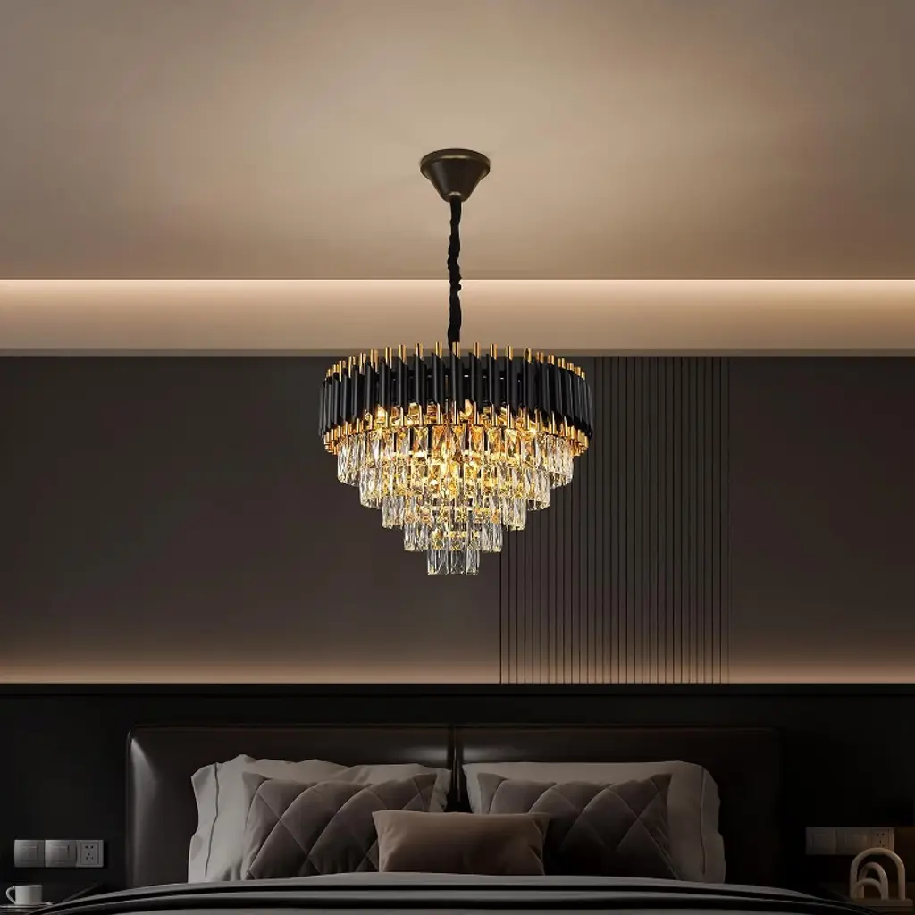 10 Light Crystal Hanging Pendant Lights 5 Tiers Black And Gold Pendant Light Fixtures