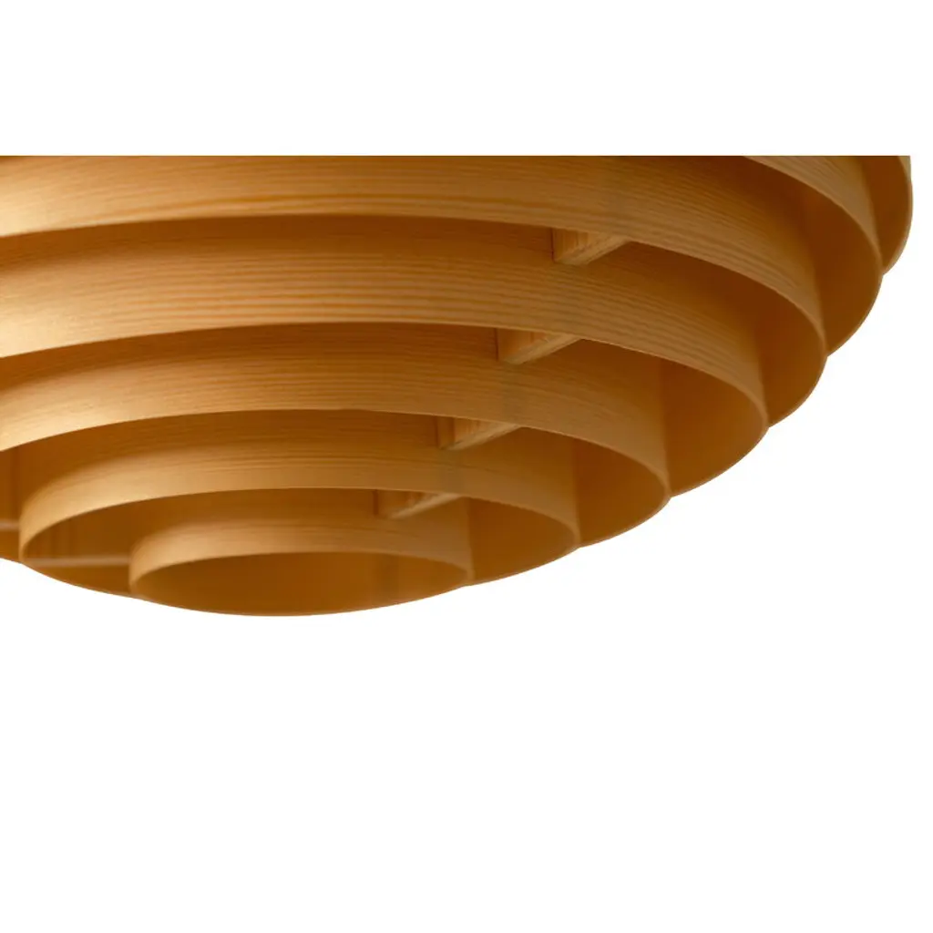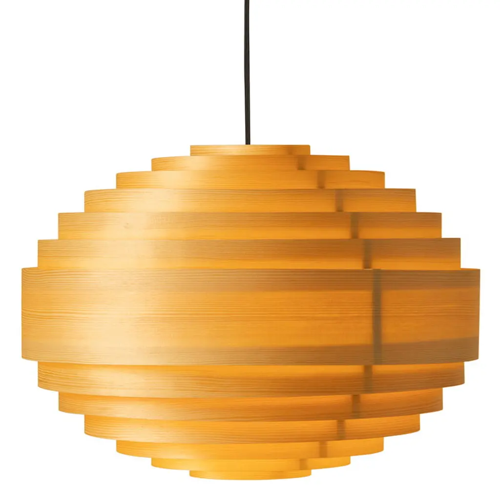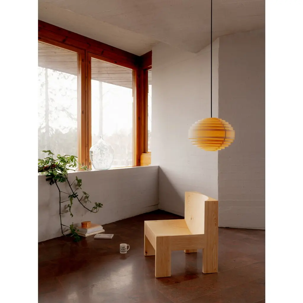 Vaarnii's Hans pendant charms with its graphic round shape. The design language of the iconic luminaire is originally from the pen of designer Hans-Agne Jakobsson. Now Vaarnii has redesigned this classic 1960s ceiling light and replaced the original material with Finnish pine. The natural wood is the perfect choice for a captivatingly beautiful luminaire: the light shines through the living wood surface with a soft honeyed glow, inviting you to come closer. The grain patterns add softness and natural charisma to the look of the ceiling light. The atmospheric glimmer of the Hans pendant is ideal for brightening up dining rooms, kitchens and living rooms, as well as public spaces. Hans luminaires are handmade in Finland.