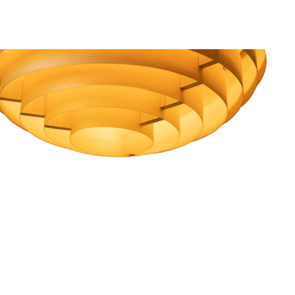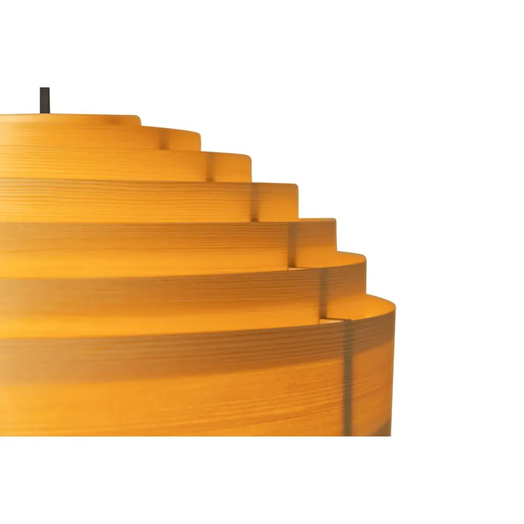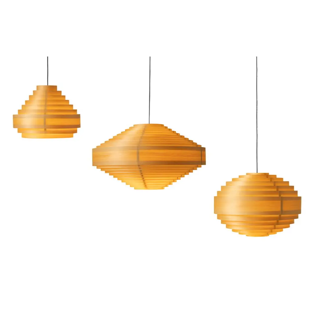 Vaarnii's Hans pendant charms with its graphic round shape. The design language of the iconic luminaire is originally from the pen of designer Hans-Agne Jakobsson. Now Vaarnii has redesigned this classic 1960s ceiling light and replaced the original material with Finnish pine. The natural wood is the perfect choice for a captivatingly beautiful luminaire: the light shines through the living wood surface with a soft honeyed glow, inviting you to come closer. The grain patterns add softness and natural charisma to the look of the ceiling light. The atmospheric glimmer of the Hans pendant is ideal for brightening up dining rooms, kitchens and living rooms, as well as public spaces. Hans luminaires are handmade in Finland.