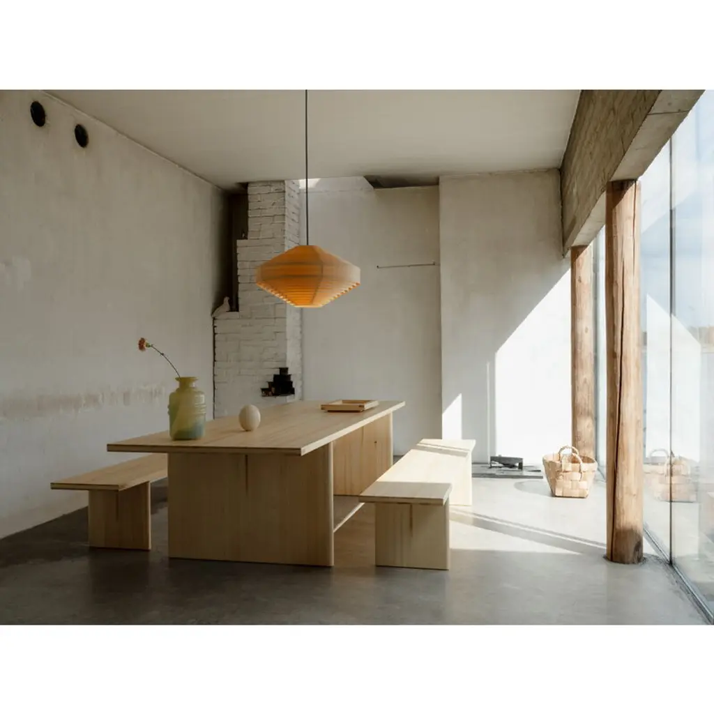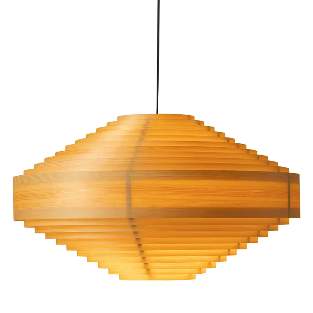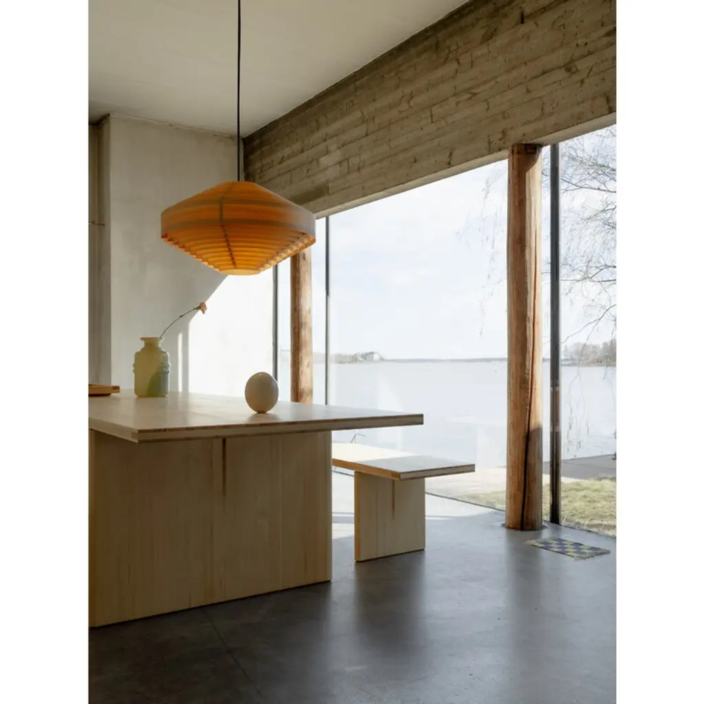 Vaarnii's Hans pendant charms with its graphic cone shape. The design language of the iconic luminaire is originally from the pen of designer Hans-Agne Jakobsson. Now Vaarnii has redesigned this classic 1960s ceiling light and replaced the original material with Finnish pine. The natural wood is the perfect choice for a captivatingly beautiful luminaire: the light shines through the living wood surface with a soft honeyed glow, inviting you to come closer. The grain patterns add softness and natural charisma to the look of the ceiling light. The atmospheric glimmer of the Hans pendant is ideal for brightening up dining rooms, kitchens and living rooms, as well as public spaces.