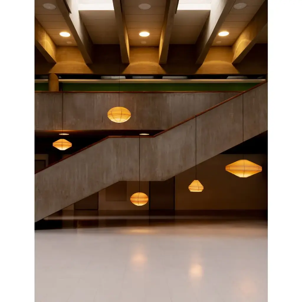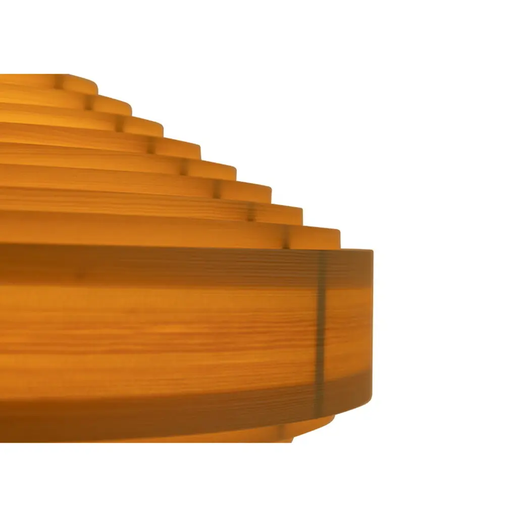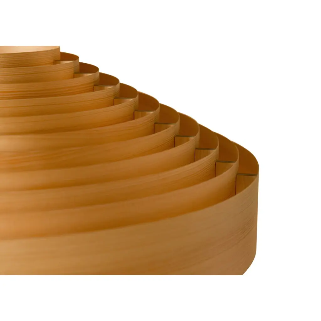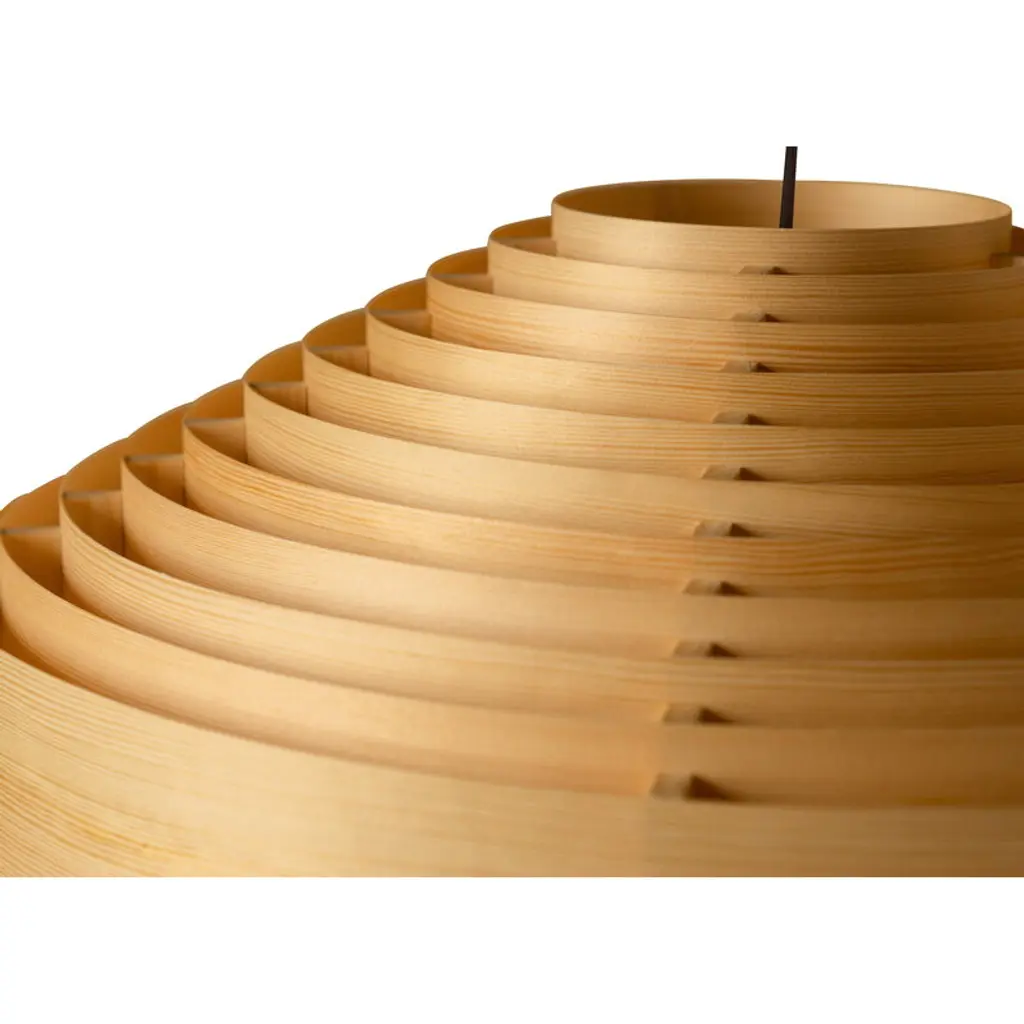 Vaarnii's Hans XL pendant charms with its graphic cone shape and its huge diameter of 70 centimeters. The design of the iconic luminaire is originally from the pen of designer Hans-Agne Jakobsson. Now, Vaarnii has redesigned this classic 1960s ceiling light and replaced the original material with Finnish pine. The natural wood is the perfect choice for a captivatingly beautiful luminaire: the light shines through the living wood surface with a soft honeyed glow, inviting you to come closer. The grain patterns add softness and natural charisma to the look of the ceiling light. The atmospheric glimmer of the large Hans XL pendant is ideal for brightening up dining rooms, kitchens and living rooms, as well as public spaces. Hans luminaires are handmade in Finland.