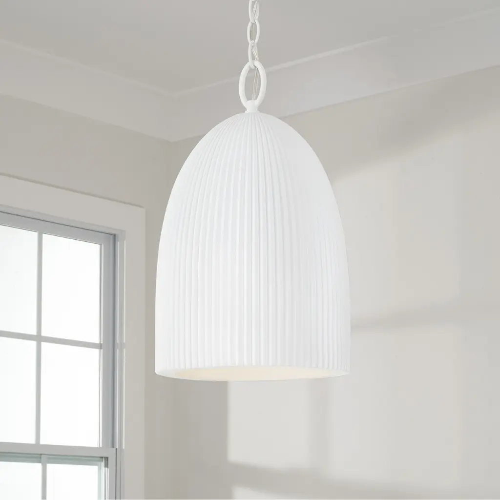 11.25" W X 18.5" H 1-Light Handcrafted Fluted Ceramic Pendant In Matte White - 11"w X 18.5"h - 11"w X 18.5"h - Ceramic White
