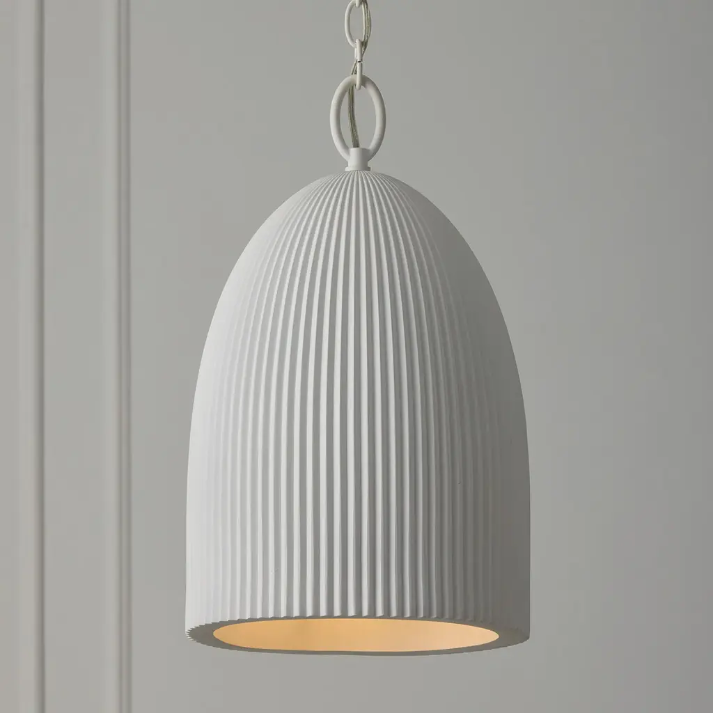 Sophisticated style and artisan details create the Mallory Pendant. The handcrafted fluted ceramic shade perfectly complements the curved silhouette, while the textured finish delivers all-over visual dimension.