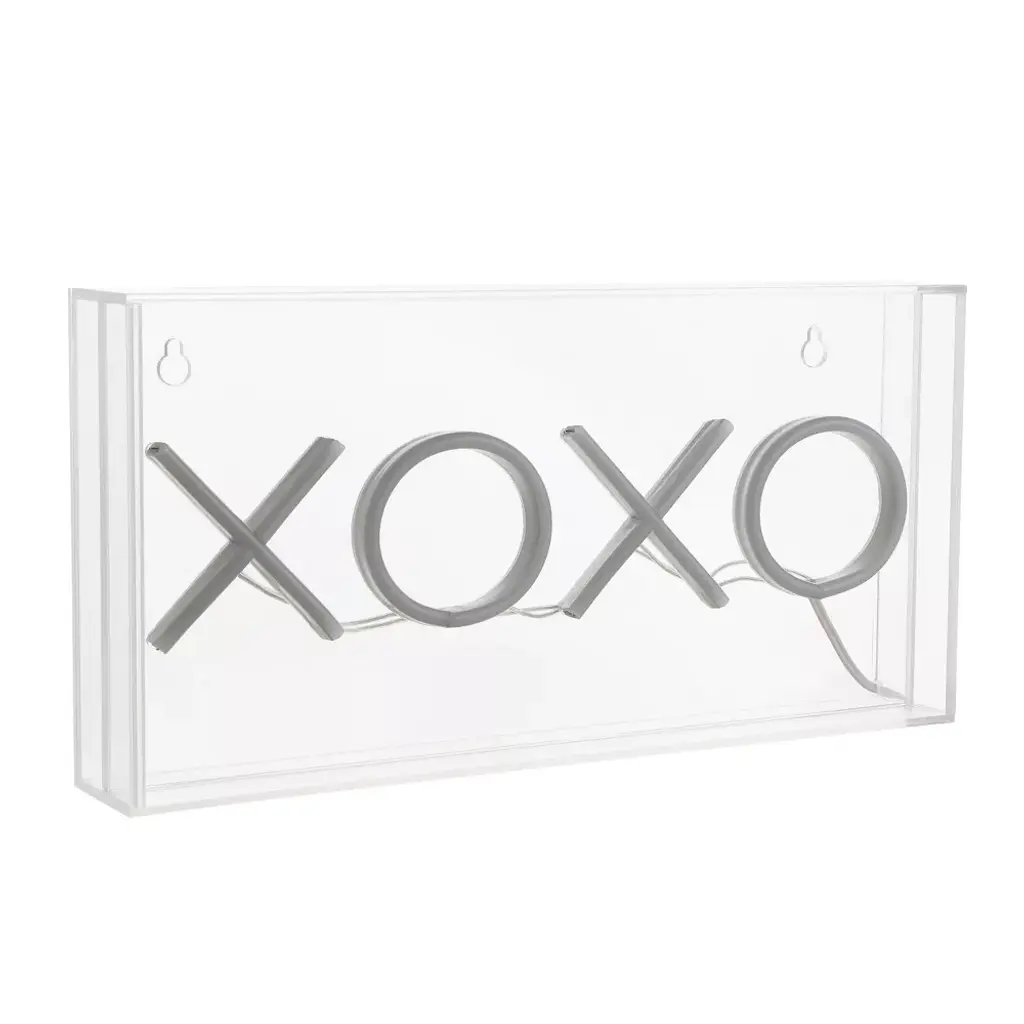 Bright neon makes a whimsical addition to your bookshelf or gallery wall. Use the Hugs & Kisses, XOXO sign as a night light, or give as a romantic gift. Convenient, low-voltage USB power is perfect for a bedroom or dorm room. Acrylic box frame has nail slots for hanging; plus it stands by itself on a shelf or table. Includes cable for safe, energy-efficient USB power - use a wall outlet or battery pack. Can be connected to a mobile power source or a computer. Built-in LED lights, so no bulbs are required. Before cleaning any lamp shade or fixture, disconnect the power source. Wipe with a soft, dry cloth. Avoid the use of chemicals and household cleaners as they may damage the finish.