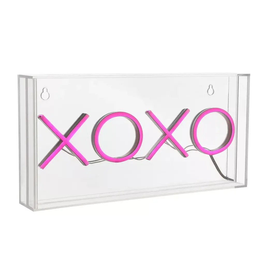 11.75" Xoxo Contemporary Glam Acrylic Box Pendant: Usb Powered, Neon Pink - Jonathan Y