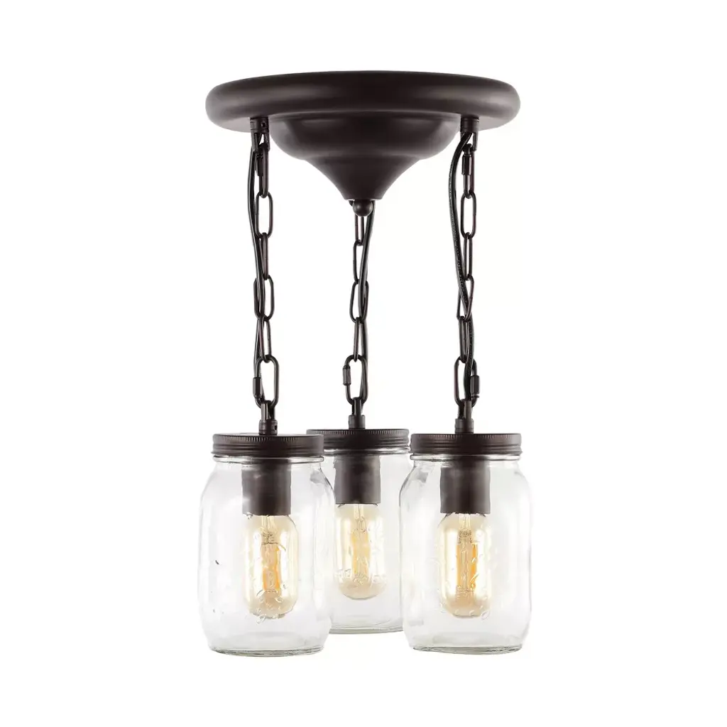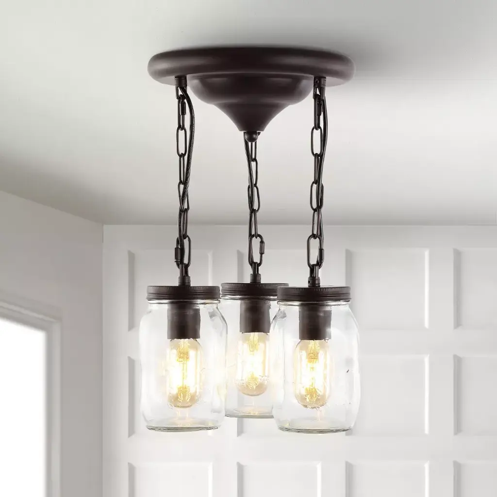 Replace outdated kitchen, living room or bedroom lighting with an on-trend Edison light fixture for an industrial farmhouse makeover. At just 18" high, this fixture is ideal for 8-foot ceilings. Our light fixtures work with LED-compatible dimmers; professional installation is recommended. Eco-friendly 5W LED bulb included. Takes 3 bulbs and compatible with TYPE "A" 25W or CFL 9W or LED 5W. Color Temperature: 2700K. CRI: 80. Before cleaning any lamp shade or fixture, disconnect the power source. Wipe with a soft, dry cloth. Avoid the use of chemicals and household cleaners as they may damage the finish.