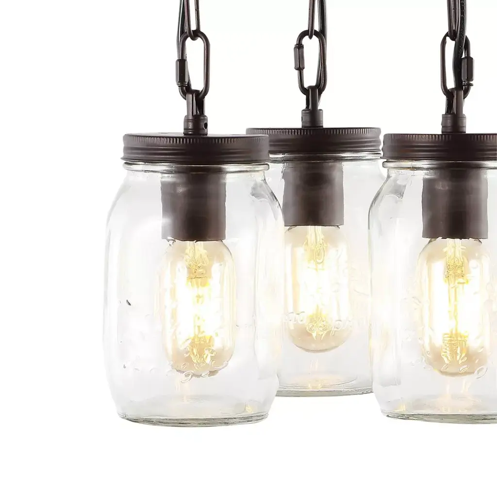 11" Led 3-light Gaines Industrial Iron Mason Jar Semi Pendant Oil Rubbed Bronze - Jonathan Y: Vintage Style Ceiling Fixture