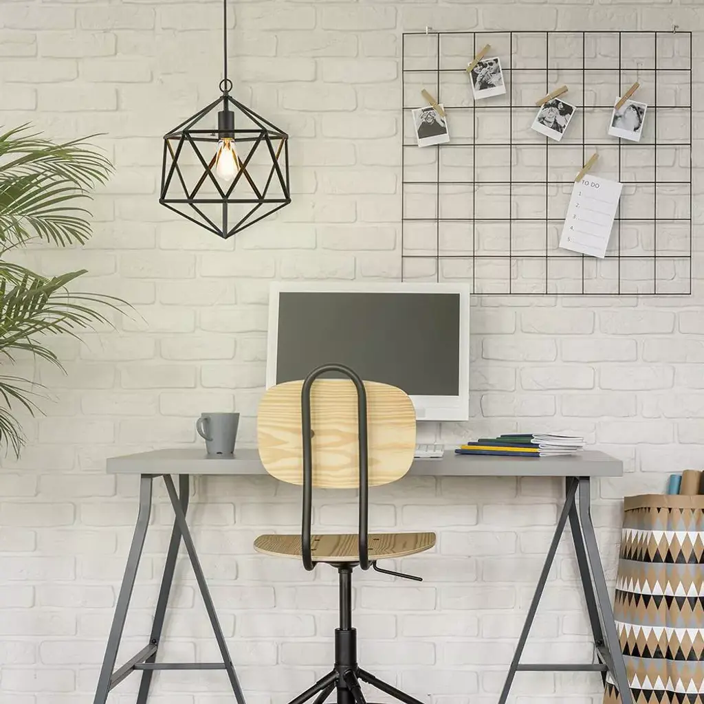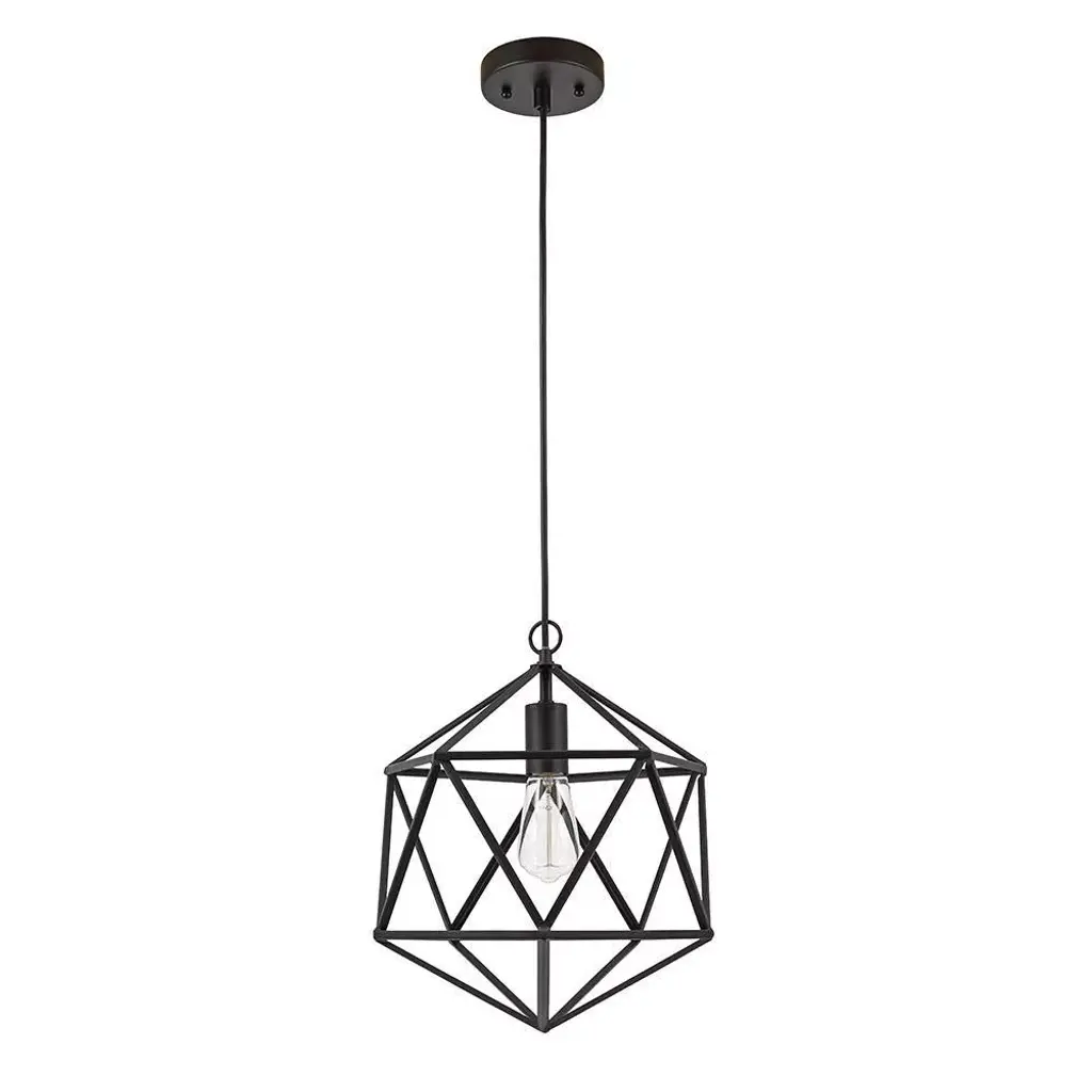 Illuminate your space this industrial inspired open metal caged pendant. The open geometric shaped shade in a classic matte black finish blends with both contemporary and mid-century modern décor. The simplistic design creates an eye-catching piece to any area in your home. The matte black metal canopy mounts to any standard ceiling junction box using the included mounting hardware. This versatile pendant is ideal to hang as a series of three over a kitchen island, a set of two over bedside tables and alone over a small dining table or kitchen sink.