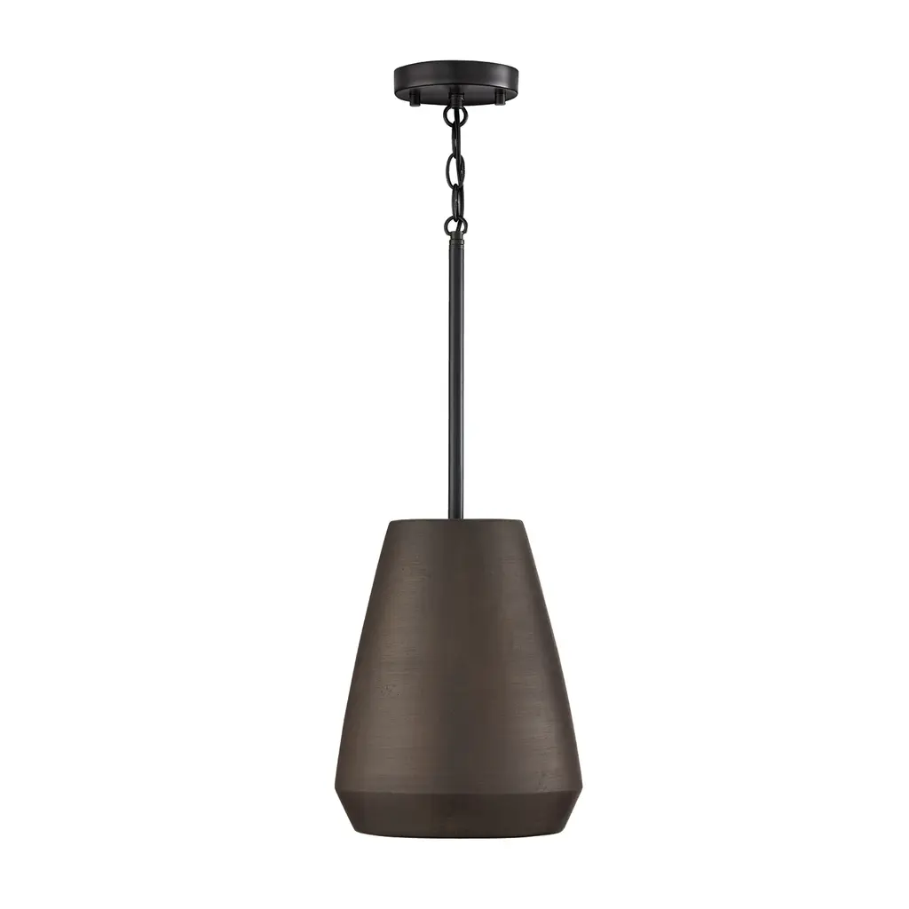 12.5" W X 14" H 1-Light Handcrafted Terracotta Pendant With Matte Black - 13"w X 13.75"h - Terracotta Umber