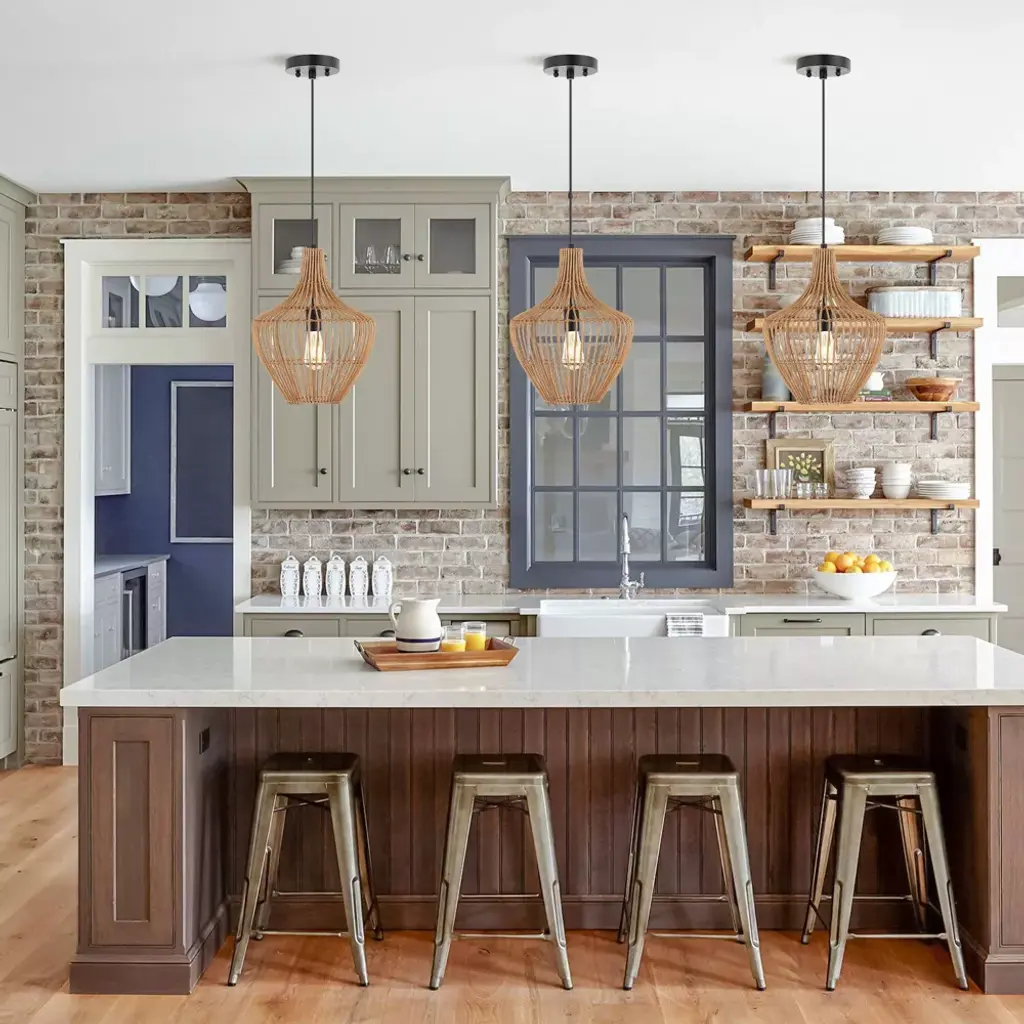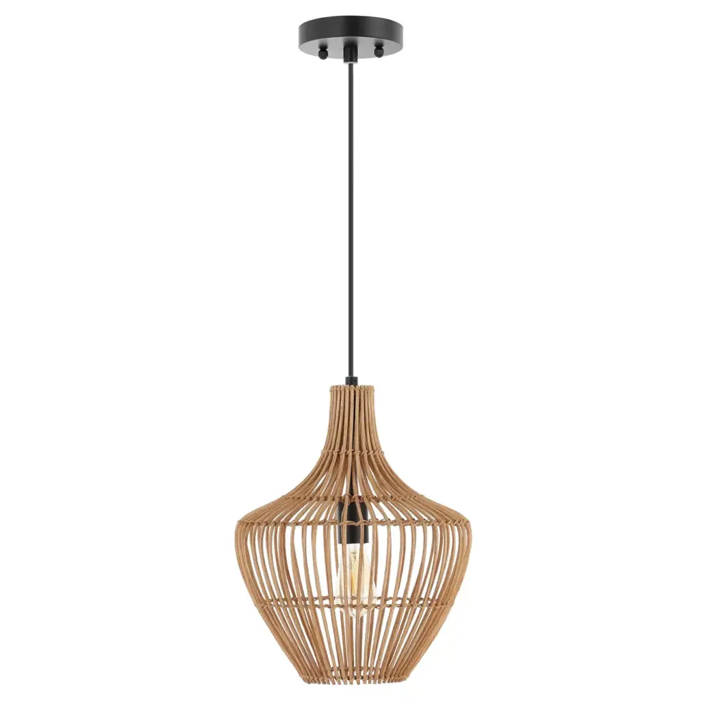 13" 1-light Lucas Farmhouse Coastal Rattan Led Pendant Brown - Jonathan Y: Swag Ceiling Fixture, Ul Listed
