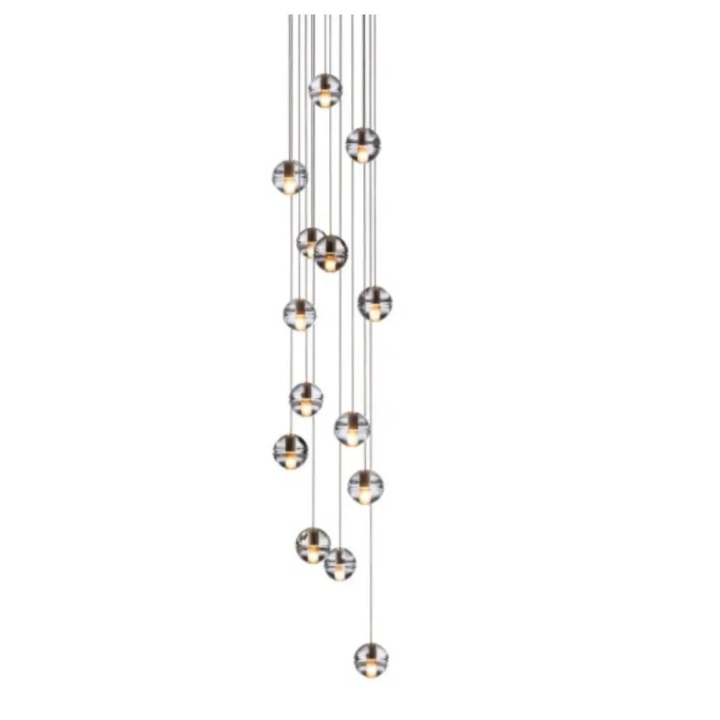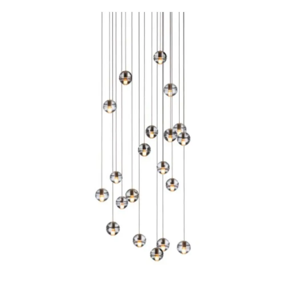 14.20 Round pendant by BocciDimensions: D 75.5 x H 200 cmMaterials: white powder coated round canopyWeight: 51 kgAvailable: Round and Rectangle version.All our lamps can be wired according to each country. If sold to the USA it will be wired for the USA for instance.14.20 uses headphone jack connections, which allow the pendants to be “plugged into” the canopy for fast and easy installation. Pendant lengths are pre-set during production and are not site adjustable.14 is an articulated, cast glass sphere with a frosted cylindrical void that houses either a low-voltage xenon or LED lamp. Individual pendants are visually subtle, but gain an atmospheric quality when multiplied and clustered in groups.Bocci is a design and manufacturing company based in Vancouver and Berlin. Founded in 2005 under the creative directorship of Omer Arbel, Bocci is committed to fostering a lateral and open-ended relationship between creative direction and craft. The company launched with one lighting design, ‘14’, which became an instant classic and remains a design staple and bestseller. Bocci’s growing portfolio of sculptural lighting is developed, engineered and fabricated in-house, through an infrastructure calibrated to provide full control over technique, quality and scale.In 2015, Bocci transformed a historic Berlin building into a showroom and archive. ‘Bocci 79’ inhabited a 2,200 m² / 23,600 sq ft former courthouse, constructed in 1896, and showcased over a decade of works by Omer Arbel, ranging from pieces in progress, prototypes and ideas, to the complete range of catalogue pieces developed for Bocci.