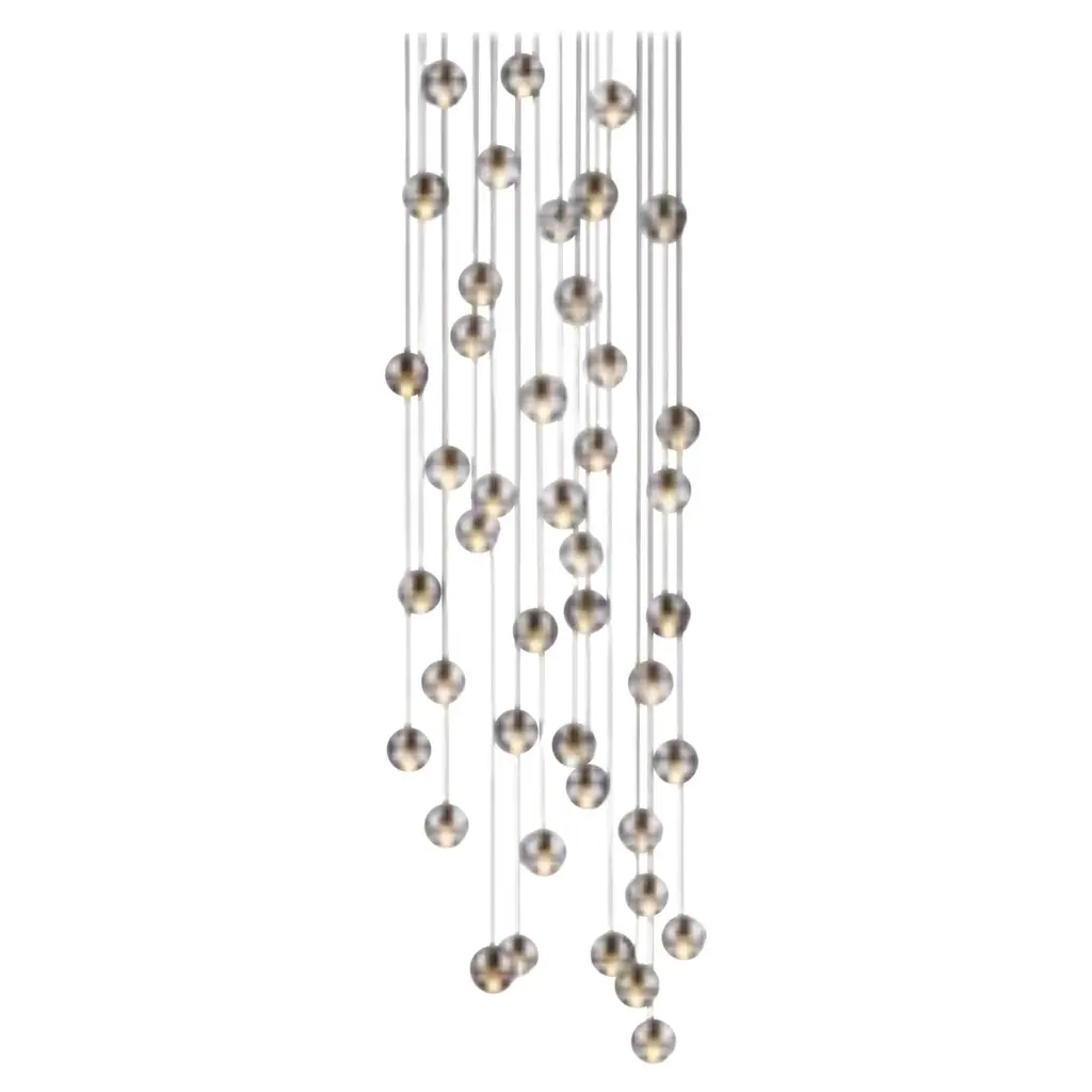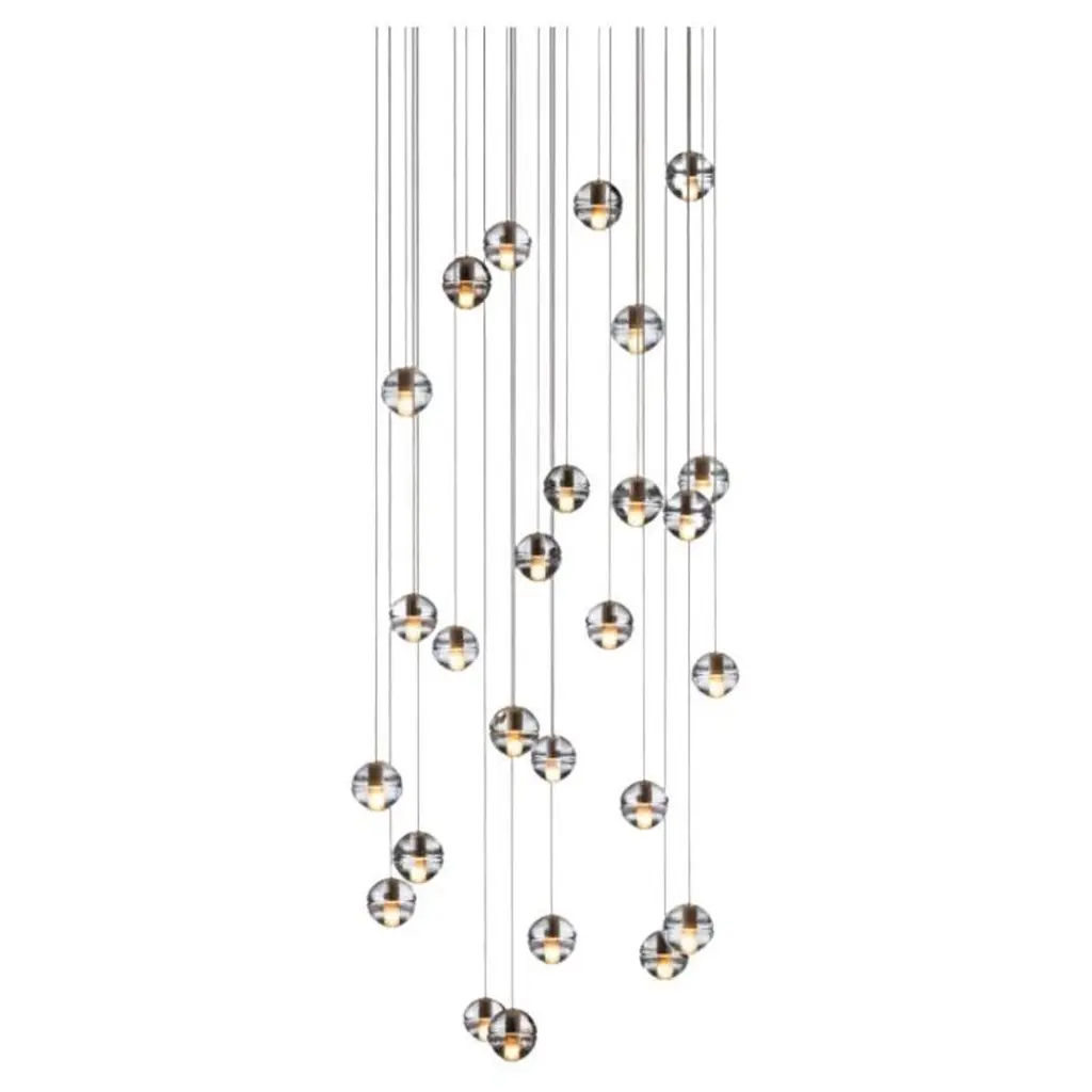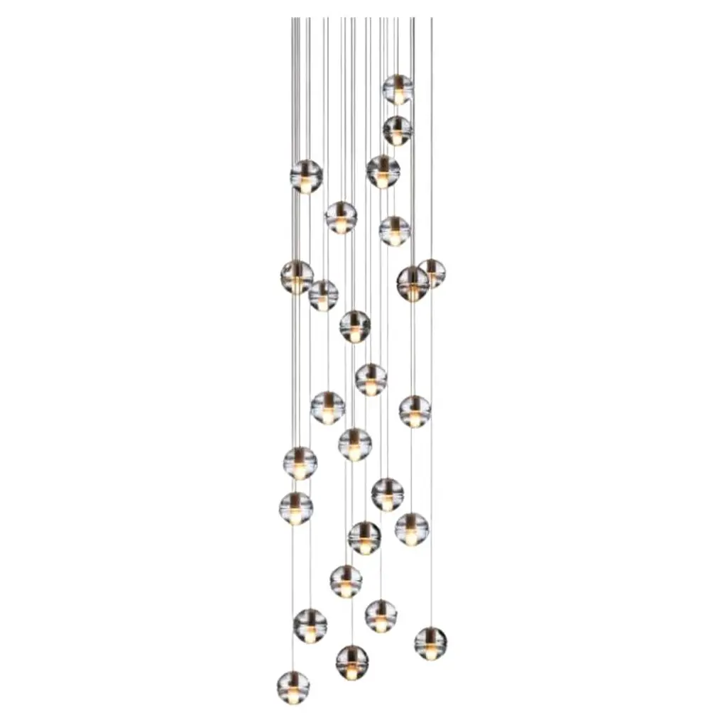 14.36 Round pendant by BocciDimensions: D 75.5 x H 200 cmMaterials: white powder coated round canopyWeight: 83.5 kgAvailable: round, rectangle and square version.All our lamps can be wired according to each country. If sold to the USA it will be wired for the USA for instance.14.36 uses headphone jack connections, which allow the pendants to be “plugged into” the canopy for fast and easy installation. Pendant lengths are pre-set during production and are not site adjustable. There are three standard canopy options. All options have a white, powder-coated finish.14 is an articulated, cast glass sphere with a frosted cylindrical void that houses either a low-voltage xenon or LED lamp. Individual pendants are visually subtle, but gain an atmospheric quality when multiplied and clustered in groups.Bocci is a design and manufacturing company based in Vancouver and Berlin. Founded in 2005 under the creative directorship of Omer Arbel, Bocci is committed to fostering a lateral and open-ended relationship between creative direction and craft. The company launched with one lighting design, ‘14’, which became an instant classic and remains a design staple and bestseller. Bocci’s growing portfolio of sculptural lighting is developed, engineered and fabricated in-house, through an infrastructure calibrated to provide full control over technique, quality and scale.In 2015, Bocci transformed a historic Berlin building into a showroom and archive. ‘Bocci 79’ inhabited a 2,200 m² / 23,600 sq ft former courthouse, constructed in 1896, and showcased over a decade of works by Omer Arbel, ranging from pieces in progress, prototypes and ideas, to the complete range of catalogue pieces developed for Bocci.