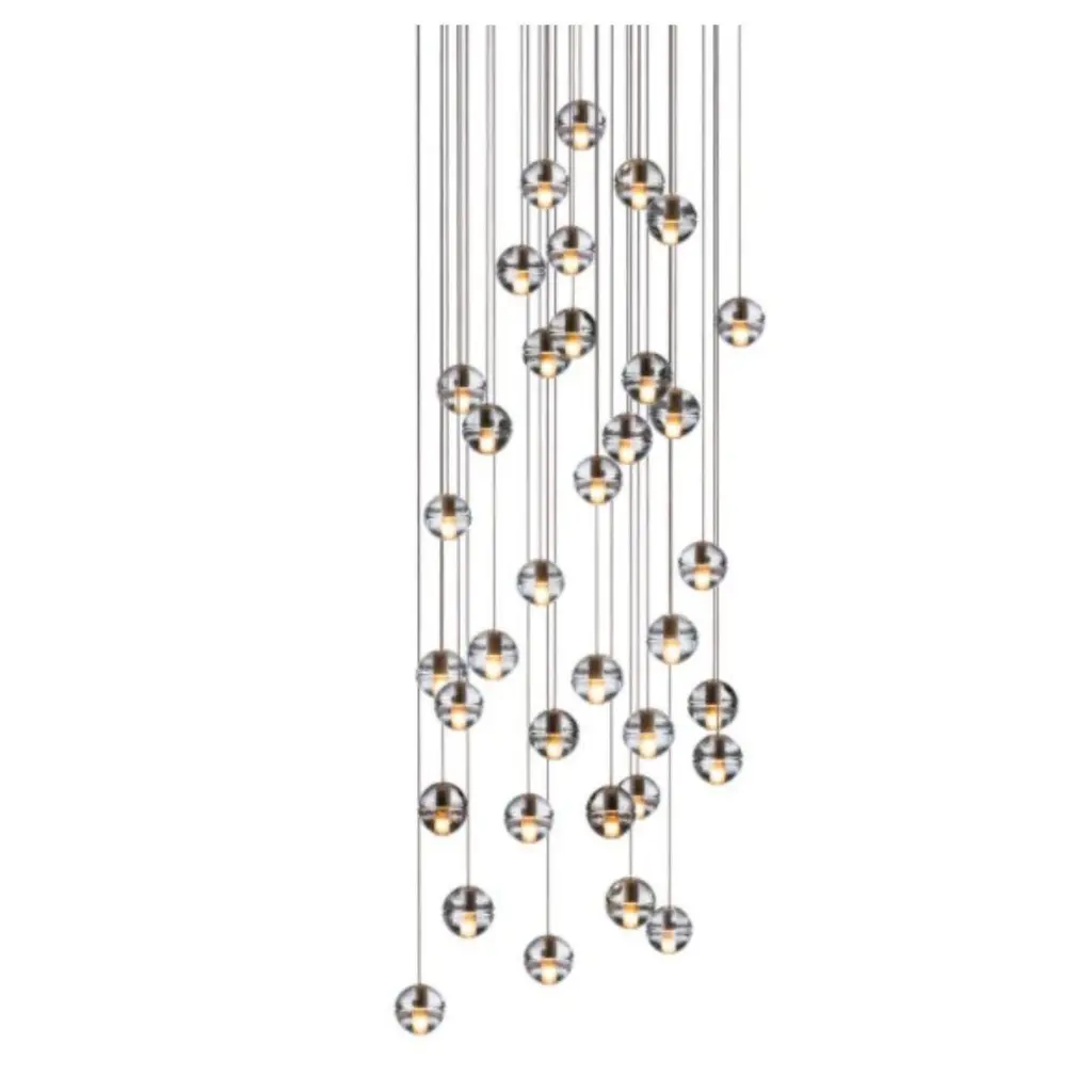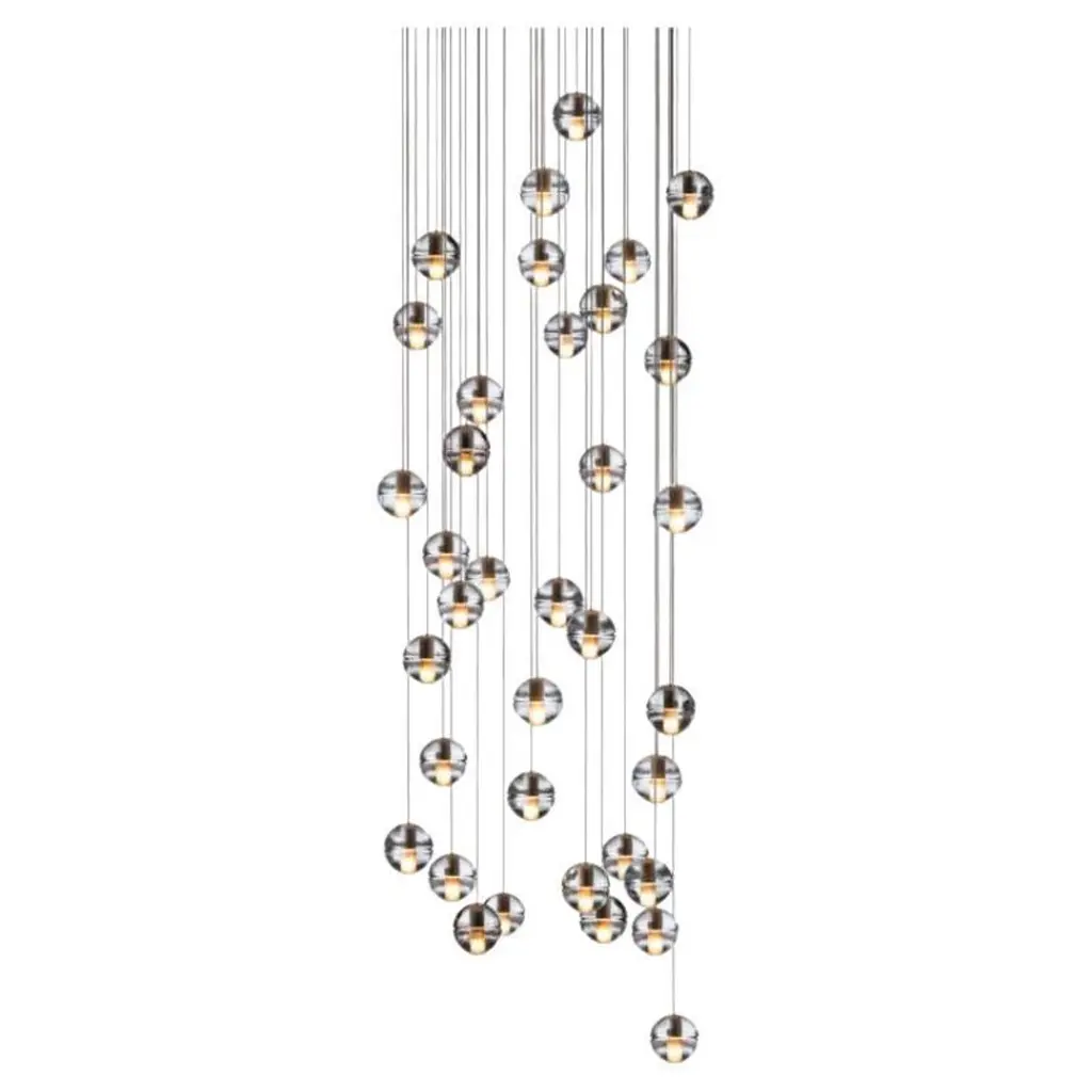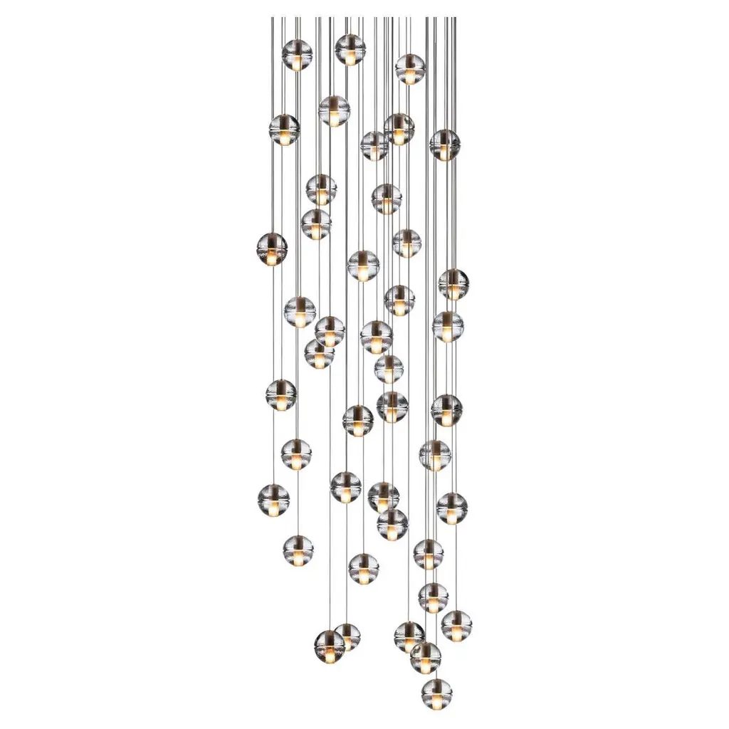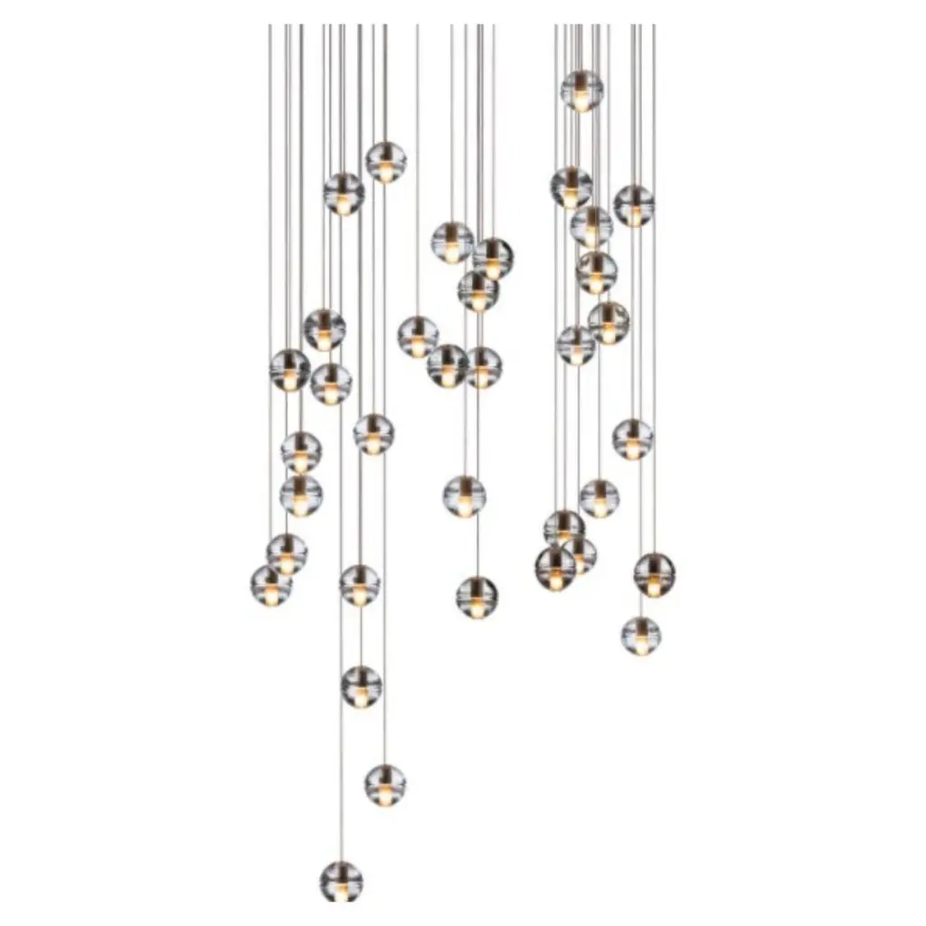 14.36 Round pendant by BocciDimensions: D 75.5 x H 200 cmMaterials: white powder coated round canopyWeight: 83.5 kgAvailable: round, rectangle and square version.All our lamps can be wired according to each country. If sold to the USA it will be wired for the USA for instance.14.36 uses headphone jack connections, which allow the pendants to be “plugged into” the canopy for fast and easy installation. Pendant lengths are pre-set during production and are not site adjustable. There are three standard canopy options. All options have a white, powder-coated finish.14 is an articulated, cast glass sphere with a frosted cylindrical void that houses either a low-voltage xenon or LED lamp. Individual pendants are visually subtle, but gain an atmospheric quality when multiplied and clustered in groups.Bocci is a design and manufacturing company based in Vancouver and Berlin. Founded in 2005 under the creative directorship of Omer Arbel, Bocci is committed to fostering a lateral and open-ended relationship between creative direction and craft. The company launched with one lighting design, ‘14’, which became an instant classic and remains a design staple and bestseller. Bocci’s growing portfolio of sculptural lighting is developed, engineered and fabricated in-house, through an infrastructure calibrated to provide full control over technique, quality and scale.In 2015, Bocci transformed a historic Berlin building into a showroom and archive. ‘Bocci 79’ inhabited a 2,200 m² / 23,600 sq ft former courthouse, constructed in 1896, and showcased over a decade of works by Omer Arbel, ranging from pieces in progress, prototypes and ideas, to the complete range of catalogue pieces developed for Bocci.