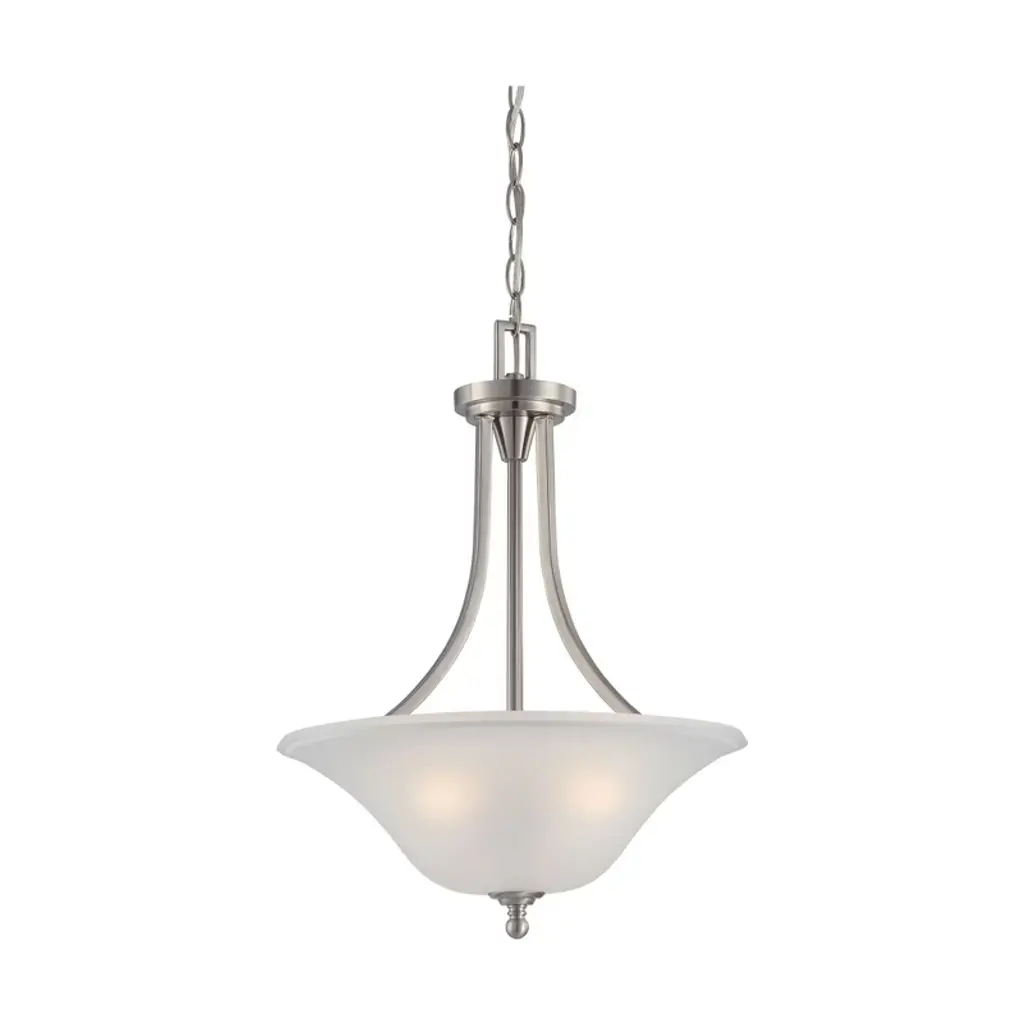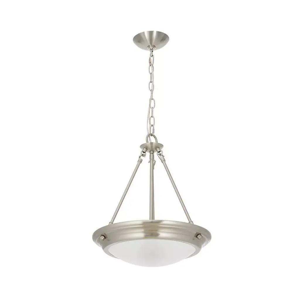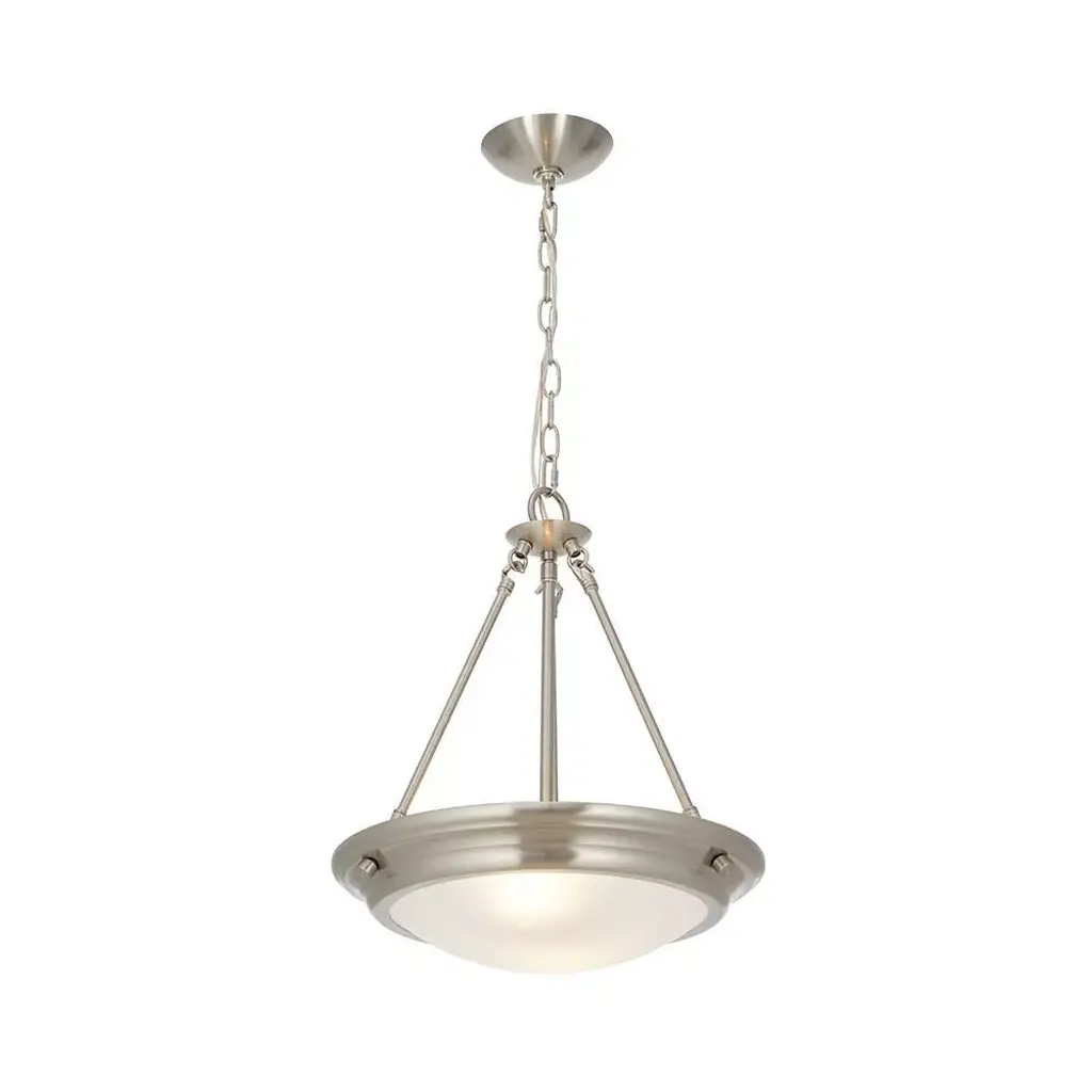 For over 30 years, Catalina Lighting has been creating stylish, well-crafted lighting solutions that inspire. Designed for modern living, our collections blend contemporary aesthetics with everyday functionality, making it easy to refresh your space with effortless style. This 2-light pendant light offers the perfect illumination over an entryway or to cast a warm glow over a hall. At 17.75”, this round metal lamp offers a dramatic and eye-appealing silhouette that can adapt to a multitude of decor styles. It has a brushed nickel finish and is completed with a round frosted white glass shade. If you’re in need of a versatile two-light pendant lamp, this is it!