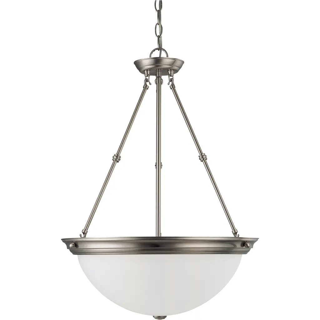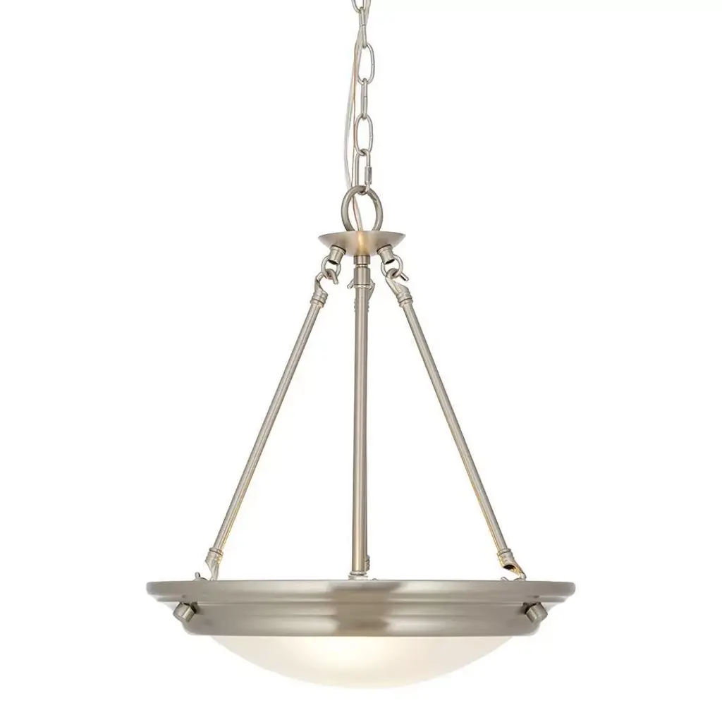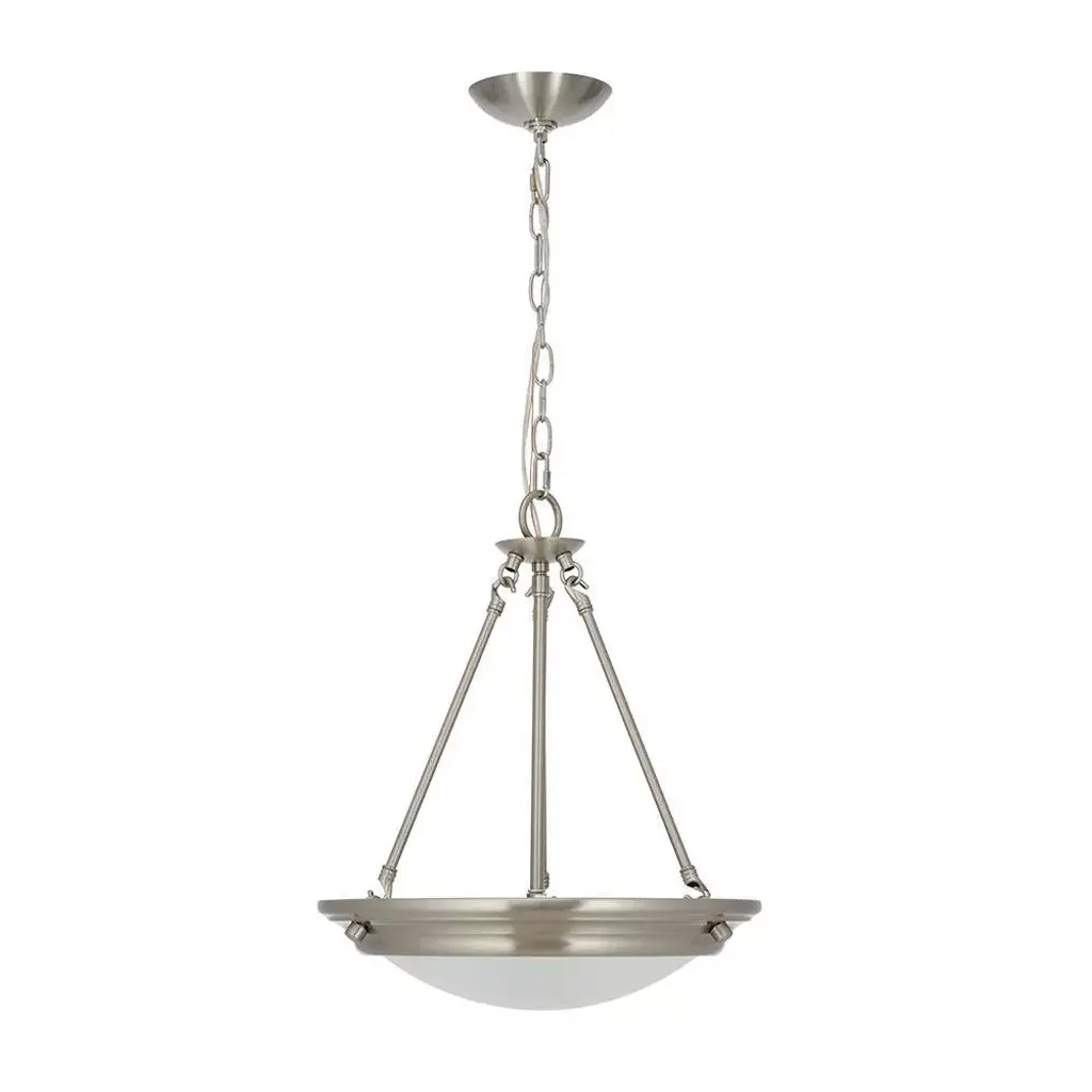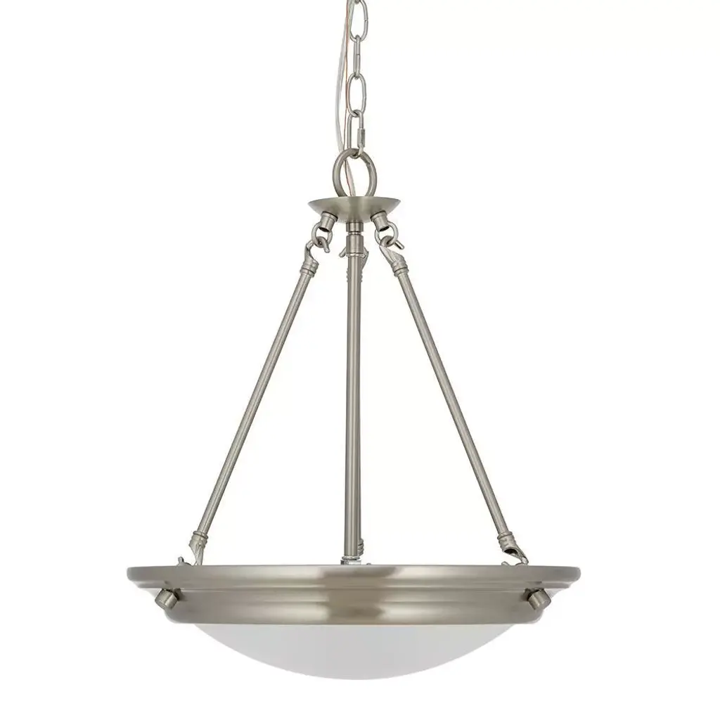 For over 30 years, Catalina Lighting has been creating stylish, well-crafted lighting solutions that inspire. Designed for modern living, our collections blend contemporary aesthetics with everyday functionality, making it easy to refresh your space with effortless style. This 2-light pendant light offers the perfect illumination over an entryway or to cast a warm glow over a hall. At 17.75”, this round metal lamp offers a dramatic and eye-appealing silhouette that can adapt to a multitude of decor styles. It has a brushed nickel finish and is completed with a round frosted white glass shade. If you’re in need of a versatile two-light pendant lamp, this is it!