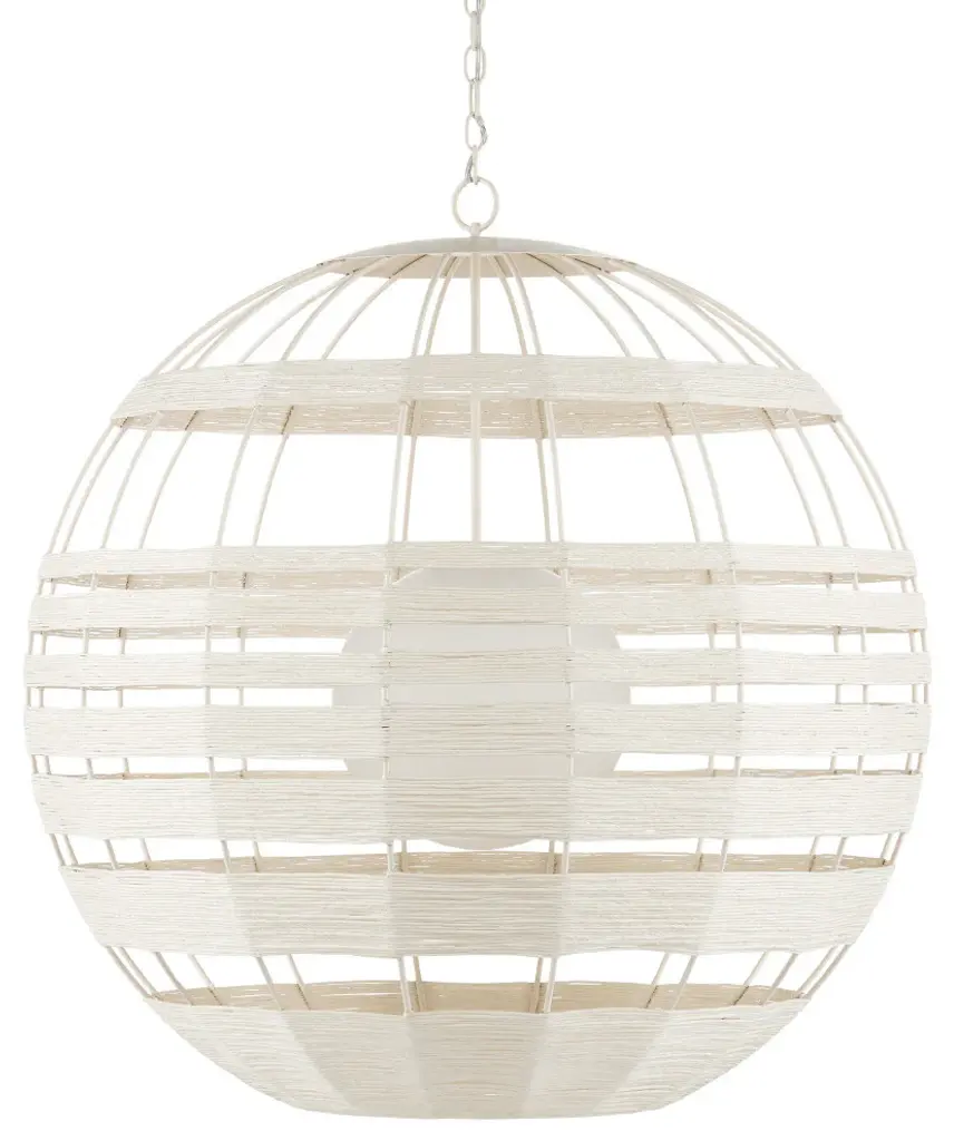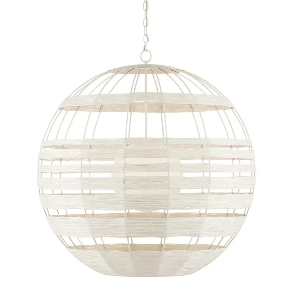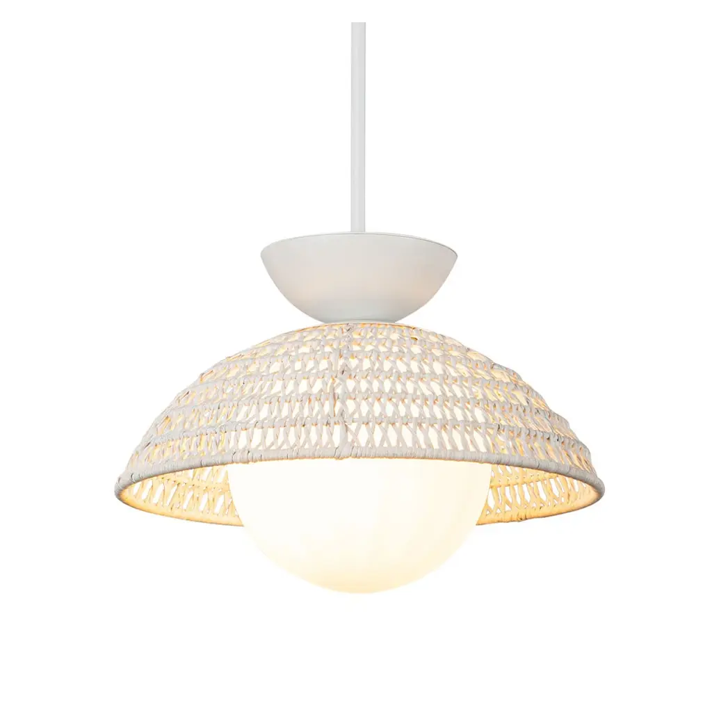 Modern design meets traditional craftsmanship in our white woven globe pendant. Made from paper wicker woven onto a sturdy metal frame, this ceiling fixture adds a Bohemian touch to your living room, bedroom, or dining room. Additionally, the drop is adjustable from 16" to 88", making it suitable for a ceiling of any height.
