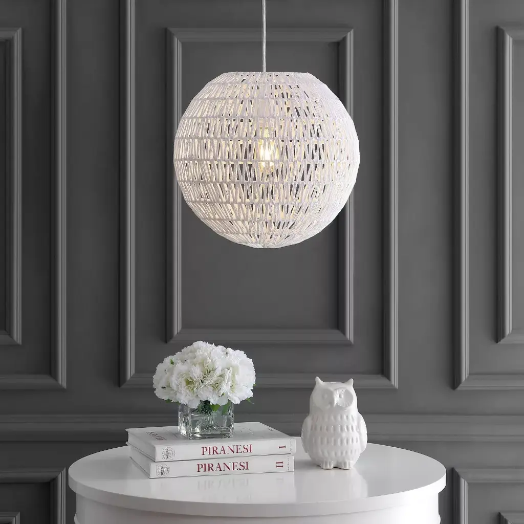 15.7" Led Woven Rattan Orb Pendant White - Jonathan Y: Modern Ceiling Light Fixture, Ul Listed, Adjustable Height