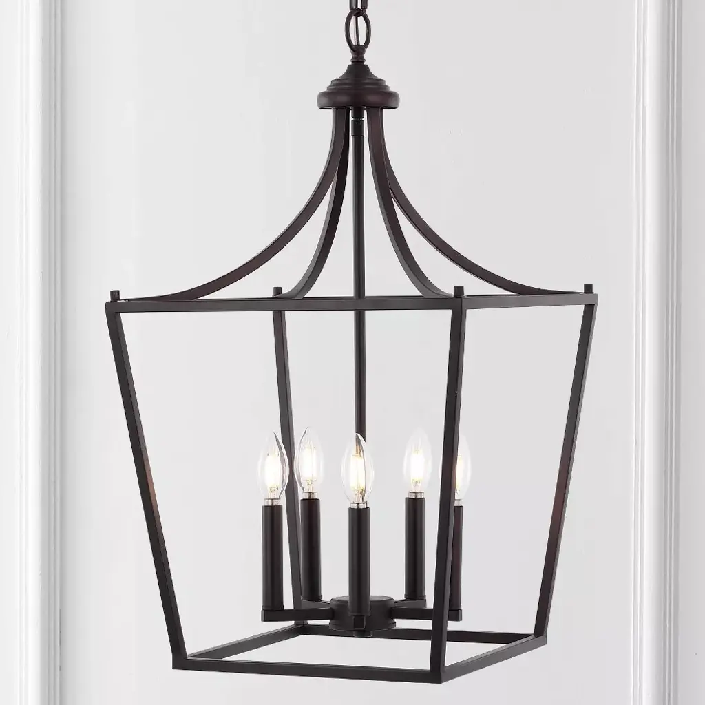16" Led 5-light Camden Iron Classic Mid-century Pendant Lantern Oil Rubbed Bronze - Jonathan Y: Adjustable Chain, Ul Listed