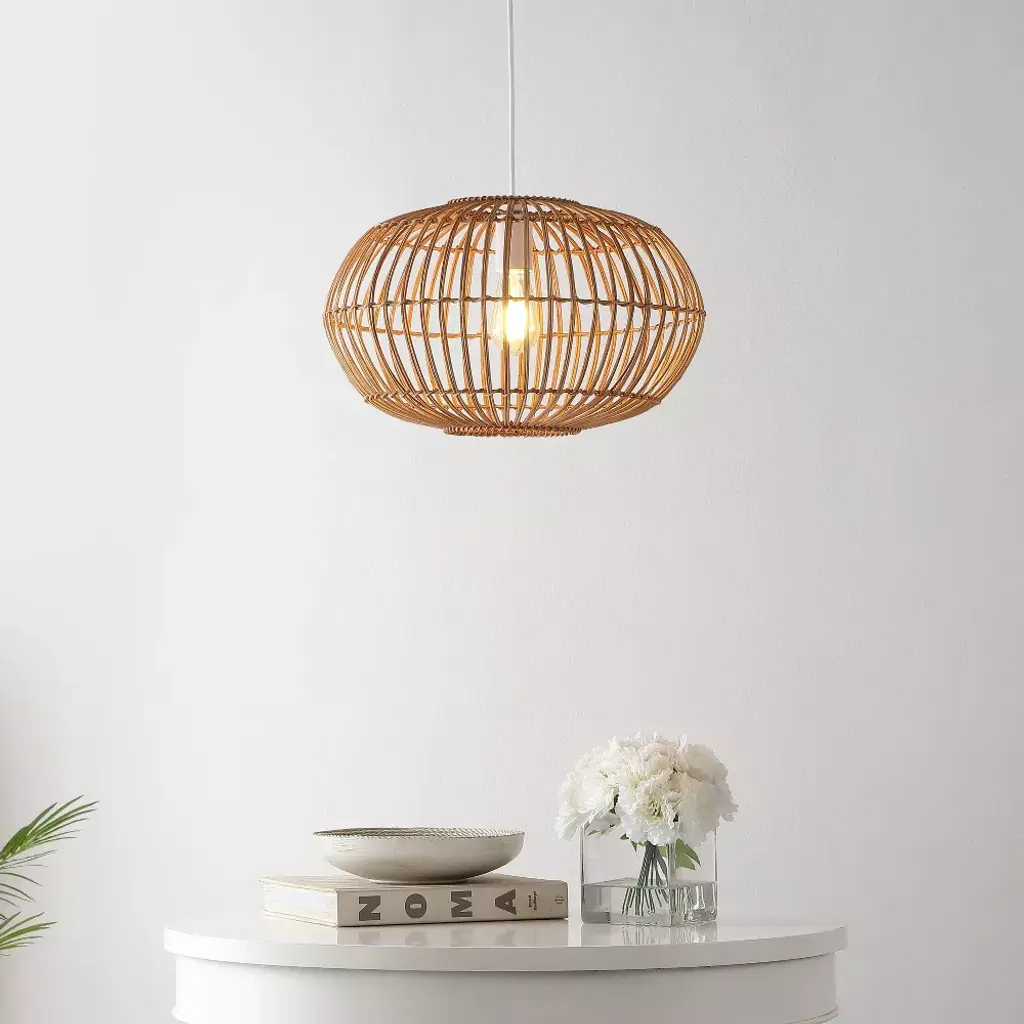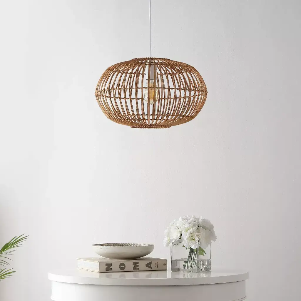 17.5" 1-light Leo Farmhouse Coastal Rattan Led Pendant Brown - Jonathan Y: Swag Lamp, Adjustable Height