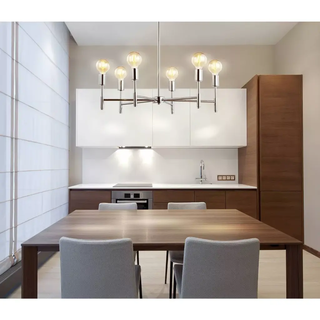 Inspired by modern masters like Gaetano Sciolari, this chrome chandelier would look elegant with chandelier bulbs and shades or modern with exposed round LEDs, as pictured. With six bulbs, it's lumescence would be a fit for a host of home applications from the dining room to the foyer. Add it over a breakfast nook table for a jolt of energy in an overlooked space.
