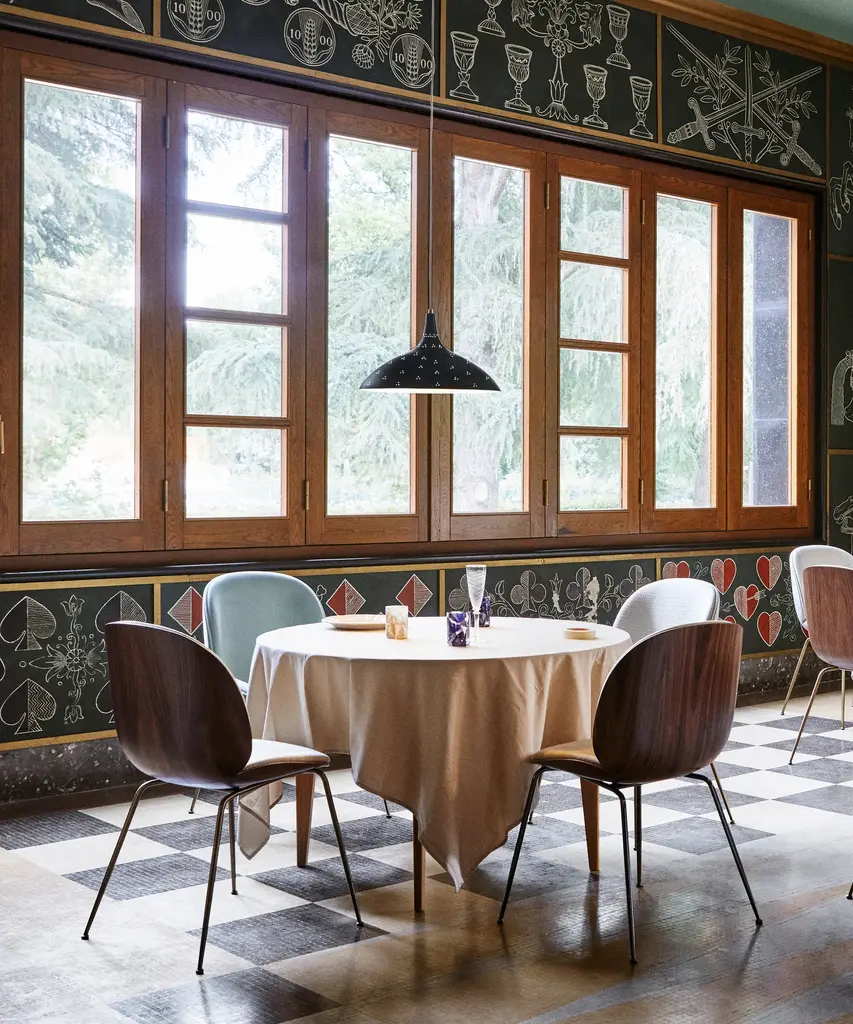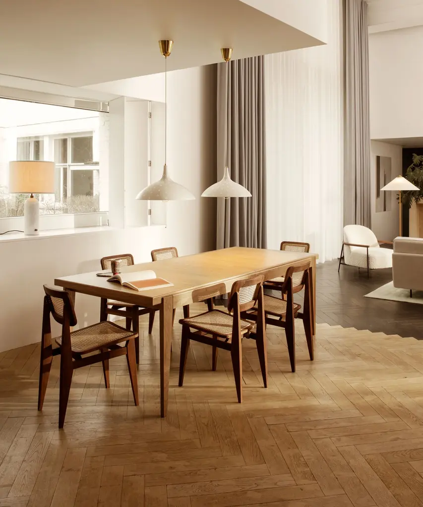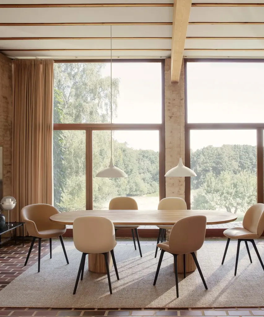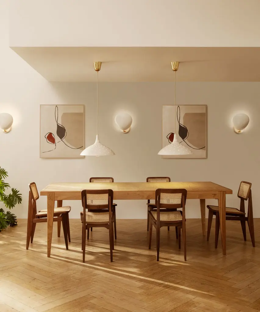 Like many of his best-known designs, the pendant was designed for the Finland House in New York - one of the most ambitious and successful projects of all time to showcase Finnish design. Known for perfecting the techniques of metal finishes, the 1965 Pendant captures Tynell's masterful understanding of brass. Characterized by its triangular perforation pattern - an artistic detail utilized by Tynell in several of his lighting objects - the pendant includes a frosted glass diffuser that softens the light. Produced by Danish design purveyor and publisher, Gubi.