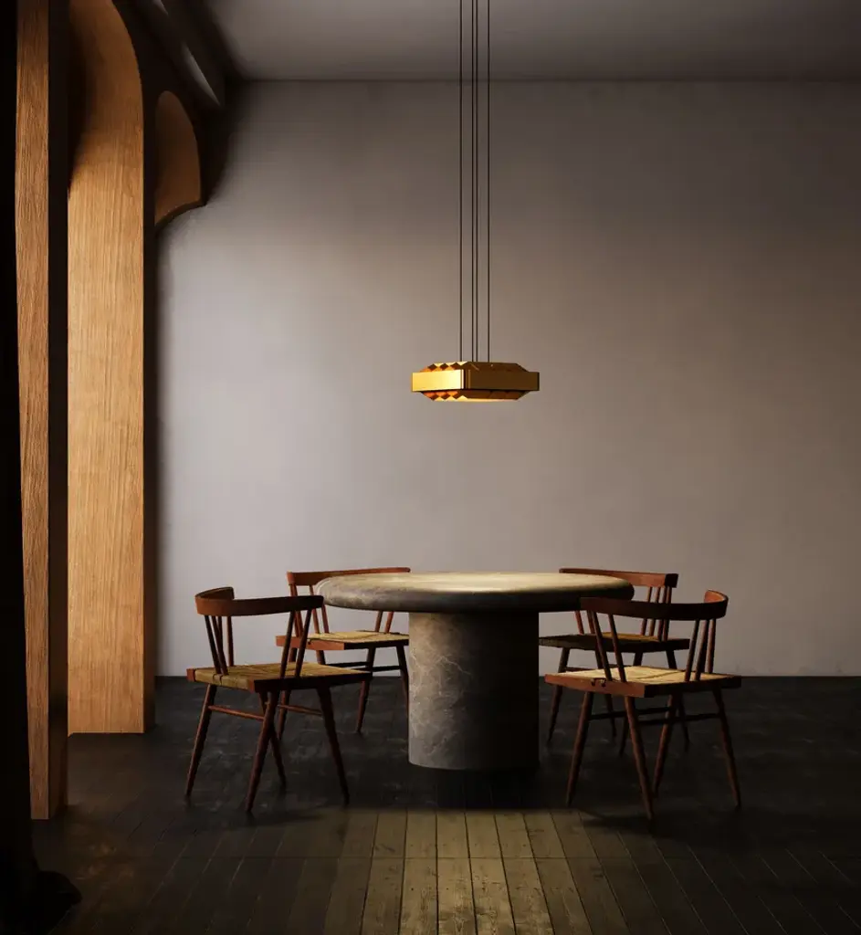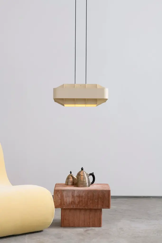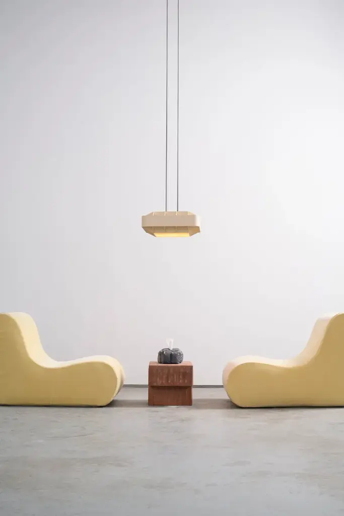 1979 PENDANT is a pendant lamp made of aluminum.It is the result of a collaboration with Will Choui, a Montreal designer known for his approach influenced by brutalist aesthetics and the simplicity of form.Choui's vision of a balance between functionality and sculptural form contributed to the creation of a timeless and robust piece, inspired by architecture and urbanism. The result is a lighting fixture whose subtle simplicity echoes values of solidity and minimalism.A square aluminum module, both structured and refined, diffuses indirect light through a grid, blending shadow and brilliance.1979 is a pendant lamp collection that captures the pure essence of an era through light and material.Inspired by Montréal’s late 1970s brutalist and modernist architecture, these lamps balance function and form.1979 reduces light to its purest form, where nostalgia and innovation meet to revive the beauty of a bygone era.The 1979 collection by Darmes and Will Choui captures the raw essence of an era through light and material. Inspired by Montréal's brutalist and modernist architecture of the late 1970s, these lamps combine functionality and form.A square aluminium module, both structured and refined, diffuses indirect light through a grid, combining shadow and brilliance. Choui reinterprets brutalist solidity with a sense of balance, transforming the lamp into an artifact of memory.Stripped of all excess, 1979 reduces light to its purest form, where nostalgia and innovation meet to rediscover the beauty of a past era.Several materials and finishes are available: matt bronze, matt ivory, and matt black.