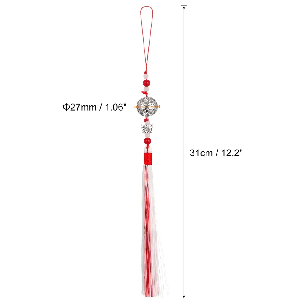 Description:Material: Polyester tassel + alloy bell + glass, which have durability and abrasion resistance, are lightweight and compact, simply beautiful, exquisite workmanship.Design: Simple and generous in style, rich in color, comes with a bell, making a crisp sound when moving, adding natural style to modern home life.Use: It can be used as curtain decor for a study, a bedroom, a living room, a dining room or a locker room, etc. Pendants for bags, Chinese folding fans, clothing hang decorationNice Gift: Perfect for home decor, bright and stylish, can be given as a housewarming gift to friends, adding a warm atmosphere to the new house.Specification:Material: Polyester Tassel + Alloy Bell + GlassTotal Length:31cm/12.2"Bell Dia: 27mm/1.06"Color: Red BlackPackage Contents: 1Pcs x Bell Pendants