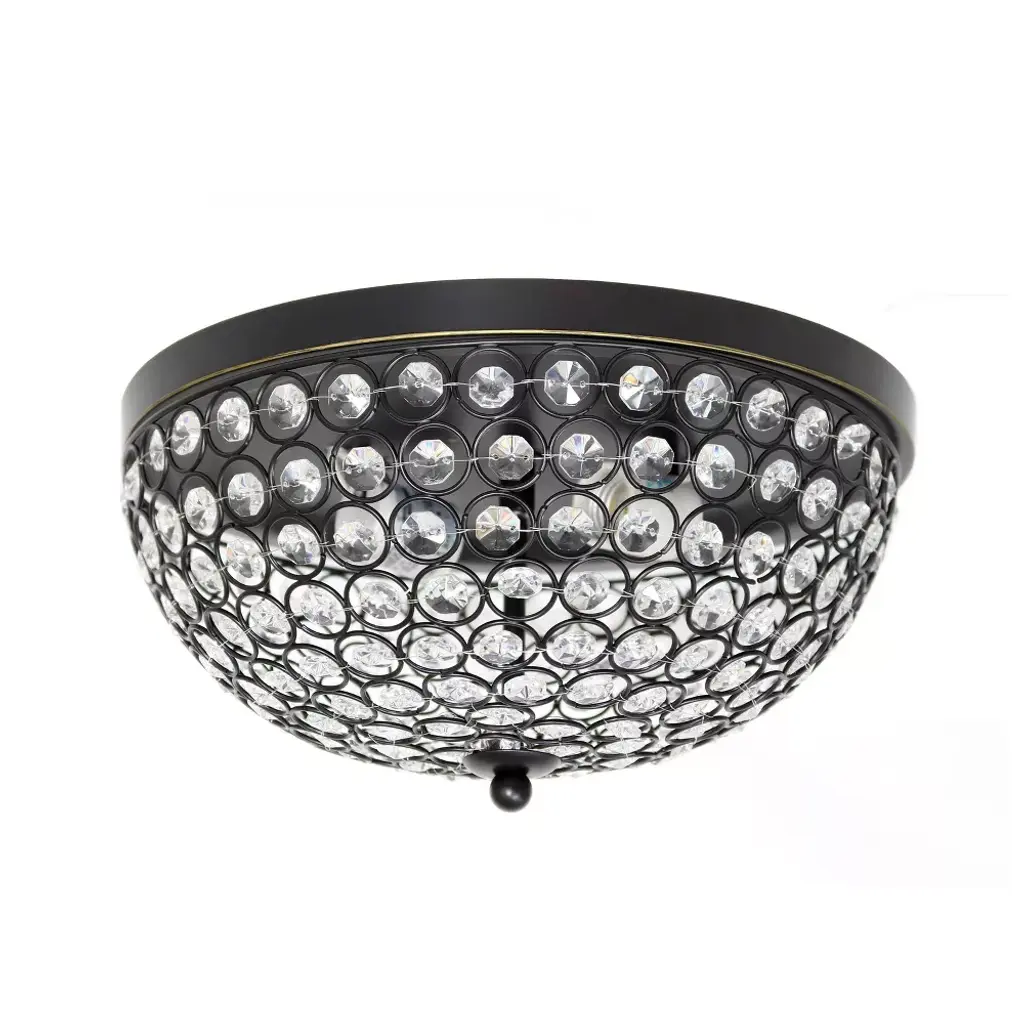 2-light Crystal Glam Ceiling Flush Mount Pendant Chrome - Lalia Home