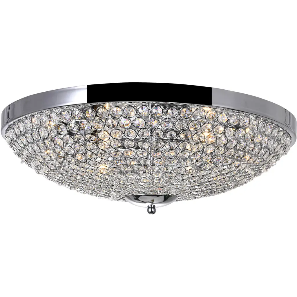 Luxury at its finest. This 2 light 13" round crystal flush mount is the perfect accent piece for any room in your home. Elegant crystals are showcased on the flawless chrome base for a simple but glamourous look! This flush mount will compliment both contemporary and modern decor. Available in a number of finishes!