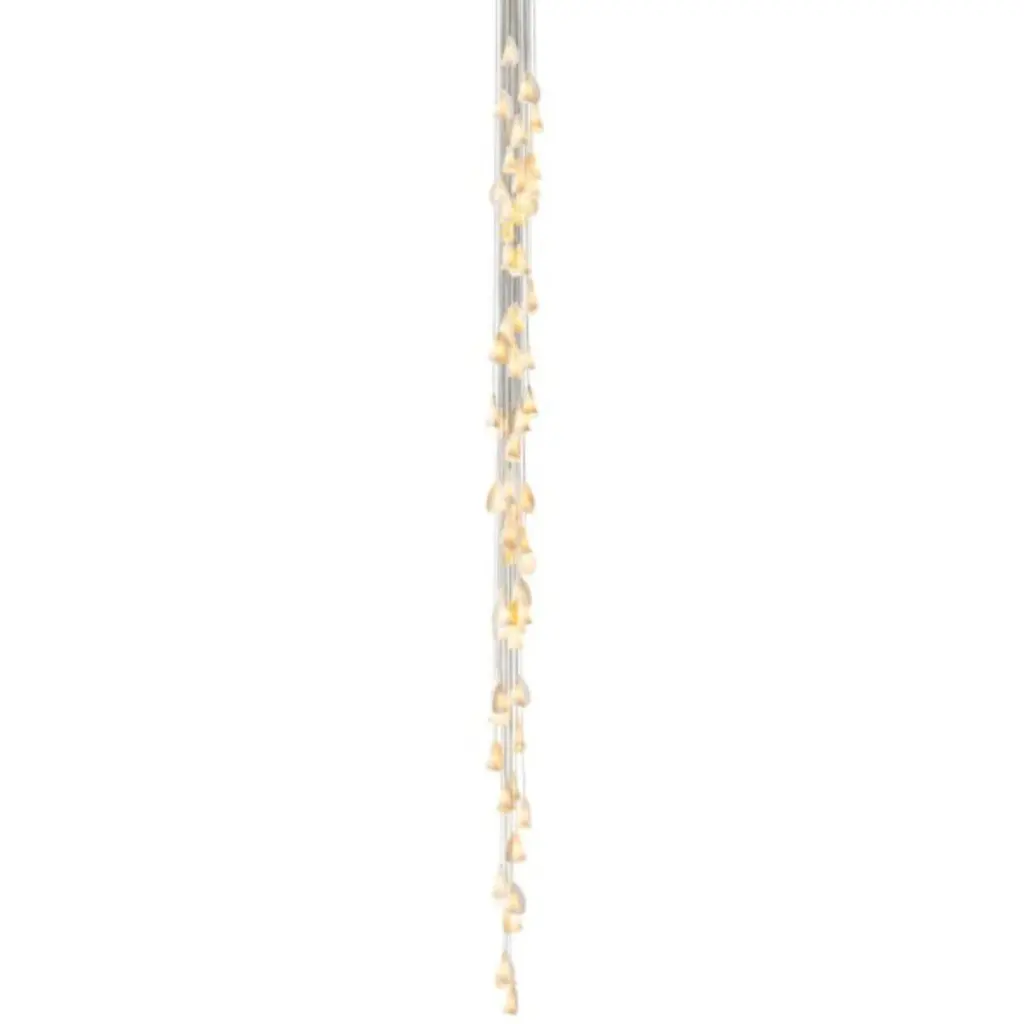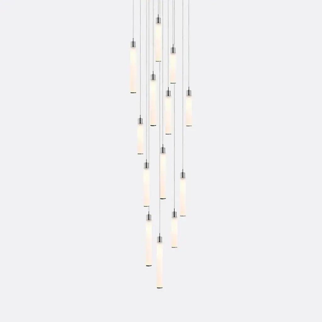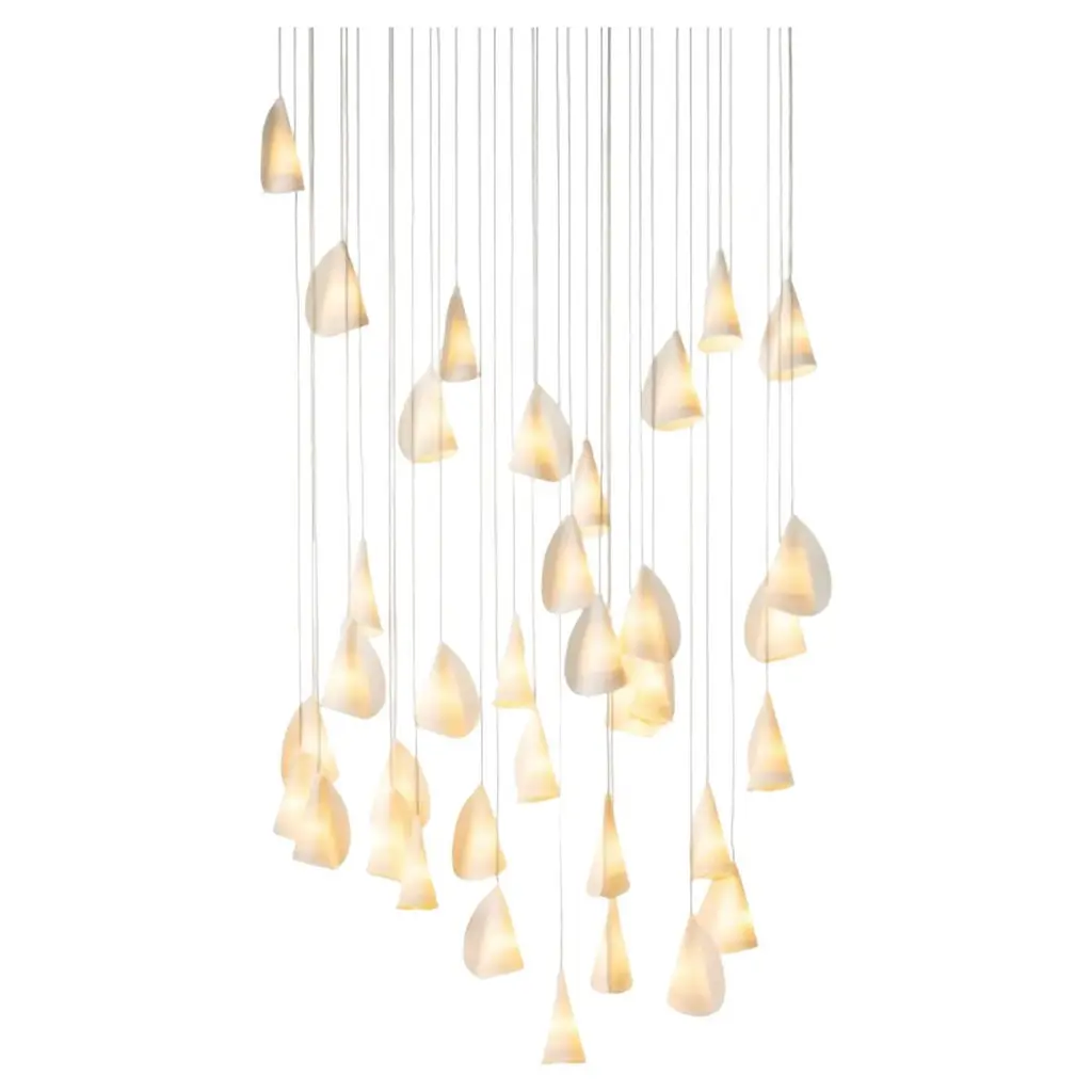 21.7 Pendant by BocciDimensions: D20.3 x H300 cmMaterials: Brushed nickel, round canopy.Weight:4.1 kgAlso available in different dimensions.All our lamps can be wired according to each country. If sold to the USA it will be wired for the USA for instance.21 results from a fabrication process in which thin porcelain sheets are draped over an inverted diffuser made of sandblasted borosilicate glass. The thin porcelain skin is allowed to dress the borosilicate core in whatever form occurs naturally – creating a unique shape in every iteration of the fabrication process.Each glass diffuser houses a low-voltage xenon or LED lamp. A strong contrast occurs between the soft, organically distributed light passing through the white porcelain skin and the crisp light moving through the glass diffuser. 21s are designed to cluster in groups, with individual pieces touching each other to create a layered composition in three dimensions.Bocci is a design and manufacturing company based in Vancouver and Berlin. Founded in 2005 under the creative directorship of Omer Arbel, Bocci is committed to fostering a lateral and open-ended relationship between creative direction and craft. The company launched with one lighting design, ‘14’, which became an instant classic and remains a design staple and bestseller. Bocci’s growing portfolio of sculptural lighting is developed, engineered and fabricated in-house, through an infrastructure calibrated to provide full control over technique, quality and scale.In 2015, Bocci transformed a historic Berlin building into a showroom and archive. ‘Bocci 79’ inhabited a 2,200 m² / 23,600 sq ft former courthouse, constructed in 1896, and showcased over a decade of works by Omer Arbel, ranging from pieces in progress, prototypes and ideas, to the complete range of catalogue pieces developed for Bocci.