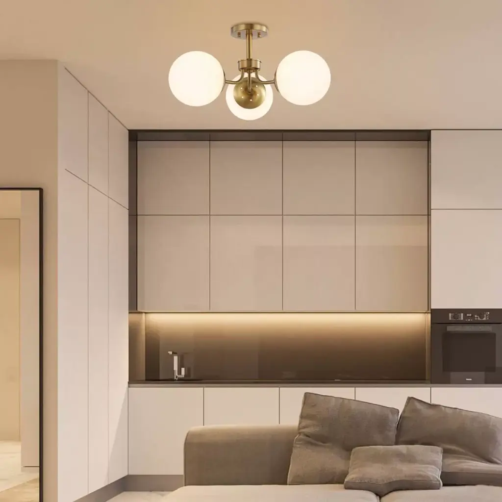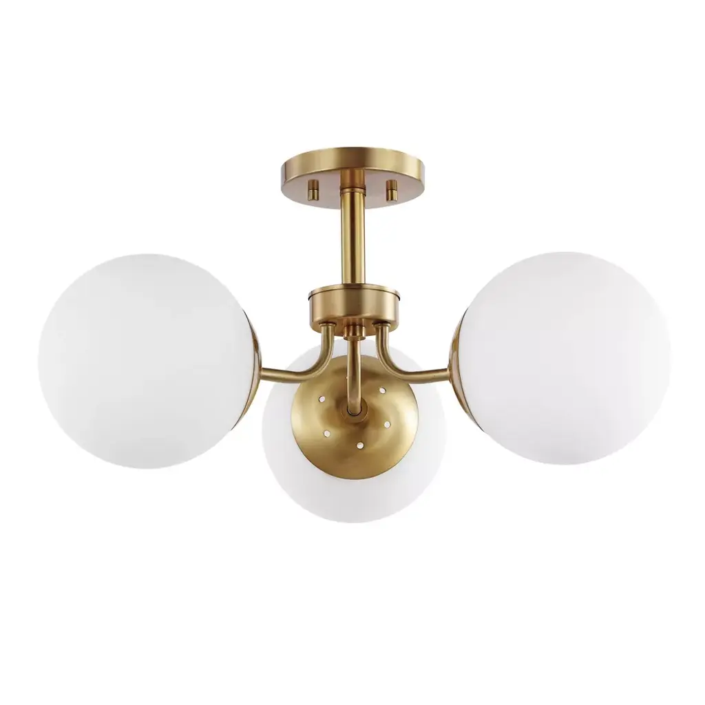 Replace outdated ceiling lights with this vintage-inspired globe light fixture for a Mid-Century modern update. At 12" high, this stylish light fixture is ideal for eight-to-ten foot ceilings. Our light fixtures work with LED-compatible dimmers; professional installation is recommended. Eco-friendly 4W LED bulb included. Takes 3 bulbs and compatible with TYPE "A" 40W or CFL 13W or LED 9W. Color Temperature: 2700K. CRI: 80. Before cleaning any lamp shade or fixture, disconnect the power source. Wipe with a soft, dry cloth. Avoid the use of chemicals and household cleaners as they may damage the finish.