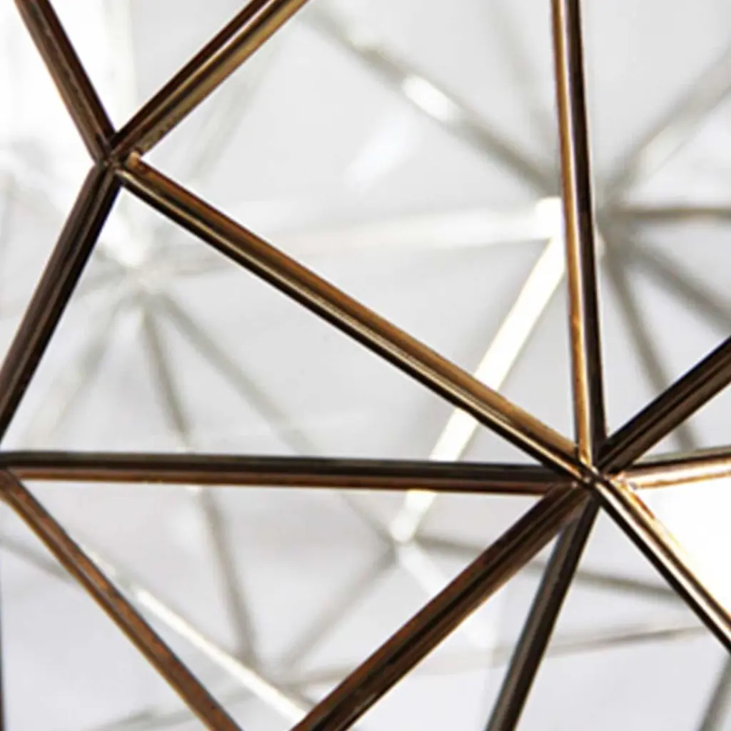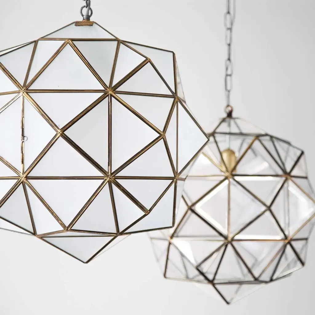 These glass lanterns are made in a generations-old workshop in Granada, Spain. Each pendant light is hand forged, and reflects the influence of Moorish design that can be observed throughout the region.With their multitude of diamond-shaped panes (‘rombus’ is derived from the Spanish word for diamond), carry the Moorish spirit of the Spanish city in which they are made, translating it into a modernist silhouette.Dimensions:24” Ø60cm ØLamping3 socket24” Ø60cm ØE26, Maximum 60W LED CompatibleCertificationsUL, cUL listed (120V) 240V available upon request.Mountinguniversal ceiling mount; hardwired.Suspension3 ft link chain (standard)Metal finishBrass Patina, Black Satin, Silver Patina