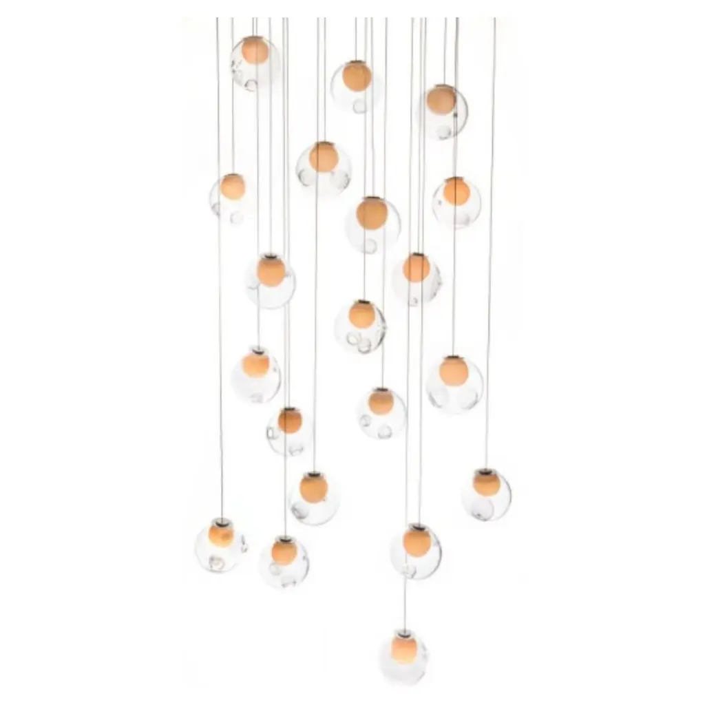 28.5 Pendant by BocciDimensions: D 20.3 x H 300 cmMaterials: diameter brushed nickel canopyWeight: 6 kgAlso available in different dimensions.All our lamps can be wired according to each country. If sold to the USA it will be wired for the USA for instance.28 Results from an innovative fabrication process that manipulates both the temperature and the direction of air flow into blown glass. The result is a slightly distorted sphere with an interior landscape of satellite shapes, including an opaque milk glass diffuser that houses either a low-voltage xenon or LED lamp.Bocci is a design and manufacturing company based in Vancouver and Berlin. Founded in 2005 under the creative directorship of Omer Arbel, Bocci is committed to fostering a lateral and open-ended relationship between creative direction and Craft.The company launched with one lighting design, ‘14’, which became an instant Classic and remains a design staple and bestseller. Bocci’s growing portfolio of sculptural lighting is developed, engineered and fabricated in-house, through an infrastructure calibrated to provide full control over technique, quality and scale.In 2015, Bocci transformed a historic Berlin building into a showroom and archive. ‘Bocci 79’ inhabited a 2,200 m² / 23,600 sq ft former courthouse, constructed in 1896, and showcased over a decade of works by Omer Arbel, ranging from pieces in progress, prototypes and ideas, to the complete range of catalogue pieces developed for Bocci.