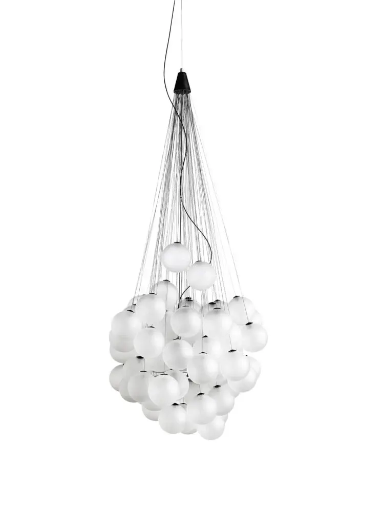 28.61 pendant by BocciDimensions: D 70.1 x H 300 cmMaterials: white powder coated round canopyWeight: 98 kgAlso available in different dimensions.All our lamps can be wired according to each country. If sold to the USA it will be wired for the USA for instance.28 results from an innovative fabrication process that manipulates both the temperature and the direction of air flow into blown glass. The result is a slightly distorted sphere with an interior landscape of satellite shapes, including an opaque milk glass diffuser that houses either a low-voltage xenon or LED lamp.Bocci is a design and manufacturing company based in Vancouver and Berlin. Founded in 2005 under the creative directorship of Omer Arbel, Bocci is committed to fostering a lateral and open-ended relationship between creative direction and craft. The company launched with one lighting design, ‘14’, which became an instant classic and remains a design staple and bestseller. Bocci’s growing portfolio of sculptural lighting is developed, engineered and fabricated in-house, through an infrastructure calibrated to provide full control over technique, quality and scale.In 2015, Bocci transformed a historic Berlin building into a showroom and archive. ‘Bocci 79’ inhabited a 2,200 m² / 23,600 sq ft former courthouse, constructed in 1896, and showcased over a decade of works by Omer Arbel, ranging from pieces in progress, prototypes and ideas, to the complete range of catalogue pieces developed for Bocci.