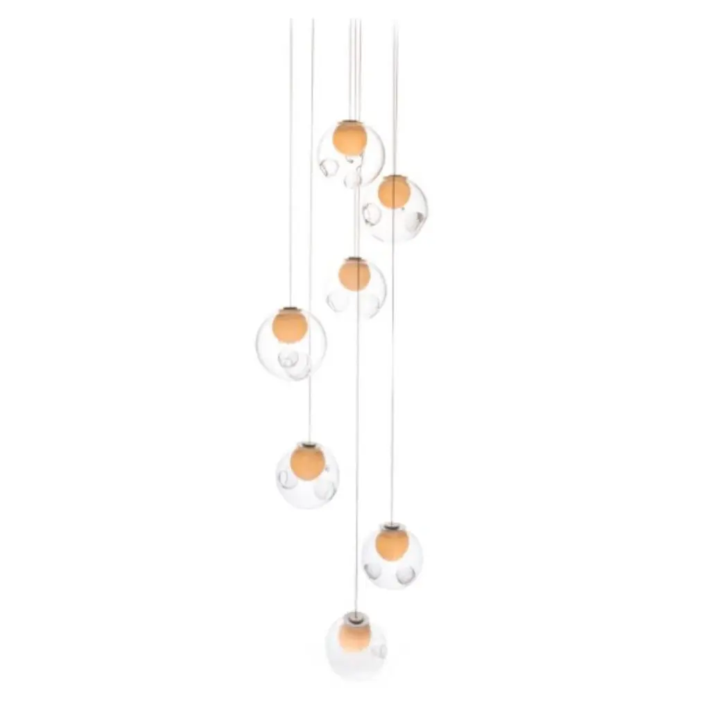 28.7 pendant by BocciDimensions: D 20.3 x H 300 cmMaterials: diameter brushed nickel canopyWeight: 8 kgAlso available in different dimensions.All our lamps can be wired according to each country. If sold to the USA it will be wired for the USA for instance.28 Results from an innovative fabrication process that manipulates both the temperature and the direction of air flow into blown glass. The result is a slightly distorted sphere with an interior landscape of satellite shapes, including an opaque milk glass diffuser that houses either a low-voltage xenon or LED lamp.Bocci is a design and manufacturing company based in Vancouver and Berlin. Founded in 2005 under the creative directorship of Omer Arbel, Bocci is committed to fostering a lateral and open-ended relationship between creative direction and craft. The company launched with one lighting design, ‘14’, which became an instant classic and remains a design staple and bestseller. Bocci’s growing portfolio of sculptural lighting is developed, engineered and fabricated in-house, through an infrastructure calibrated to provide full control over technique, quality and scale.In 2015, Bocci transformed a historic Berlin building into a showroom and archive. ‘Bocci 79’ inhabited a 2,200 m² / 23,600 sq ft former courthouse, constructed in 1896, and showcased over a decade of works by Omer Arbel, ranging from pieces in progress, prototypes and ideas, to the complete range of catalogue pieces developed for Bocci.
