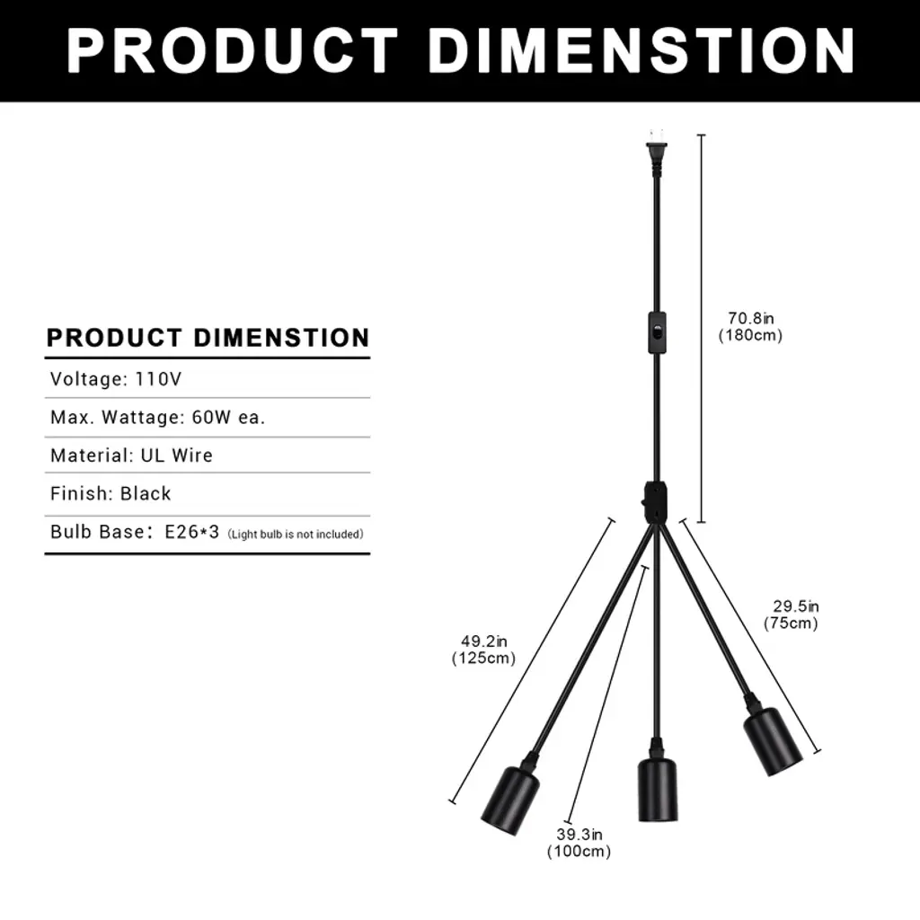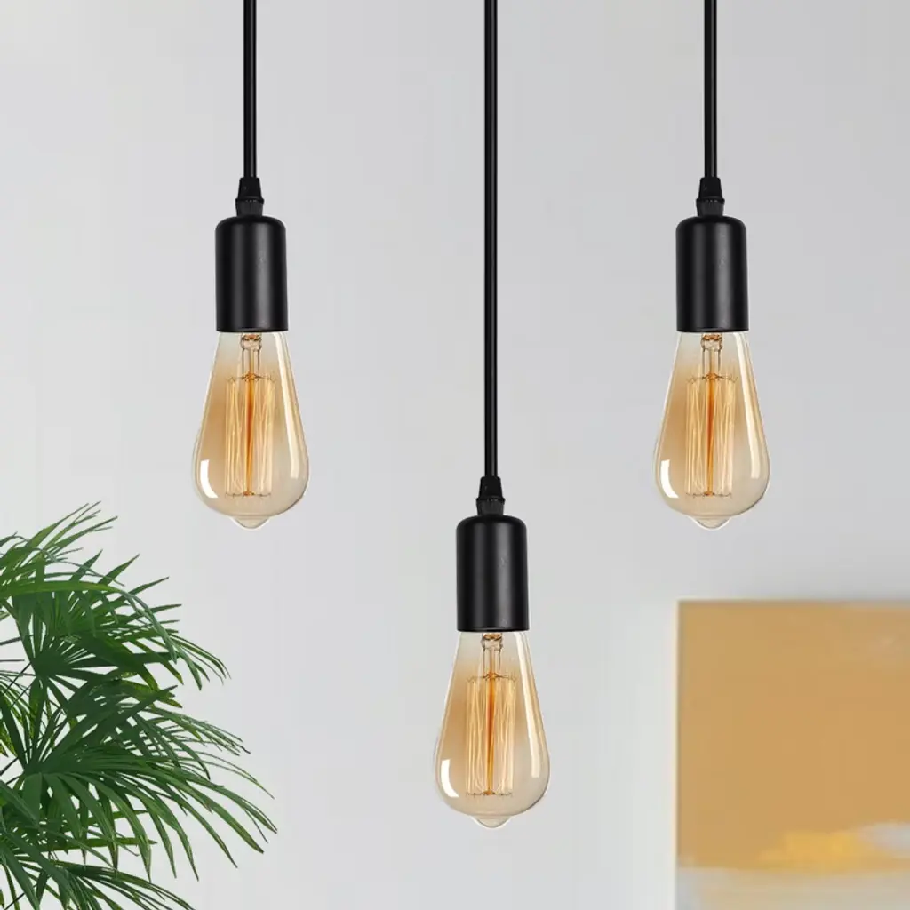 3-light Black Plug-in Hanging Pendant With On/off Switch, Industrial Hanging Lighting For Kitchen Island Dining Room Bar