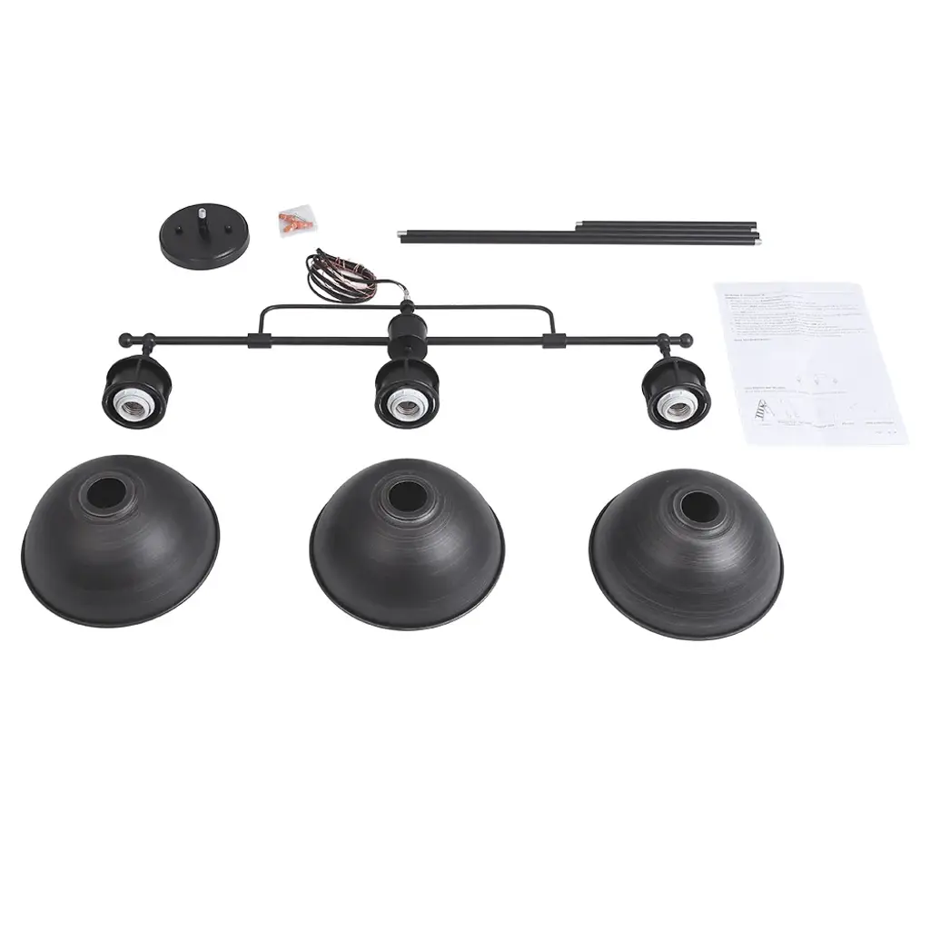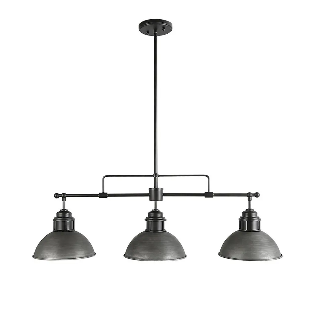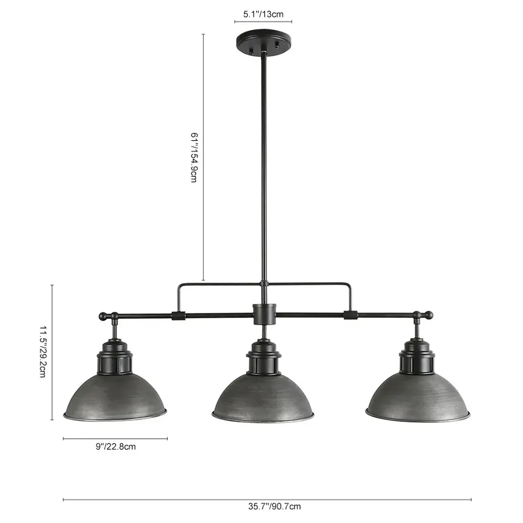 Inspired by factory lighting with wide metal dome shades, this modern industrial linear kitchen island pendant light is full of farmhouse and vintage styles at the same time. This island pendant ceiling light features a sloped-ceiling-compatible canopy, an adjustable hanging rod, and a trio of dome-shaped shades to direct light from compatible bulbs (not included) downward. Features: Product Details: