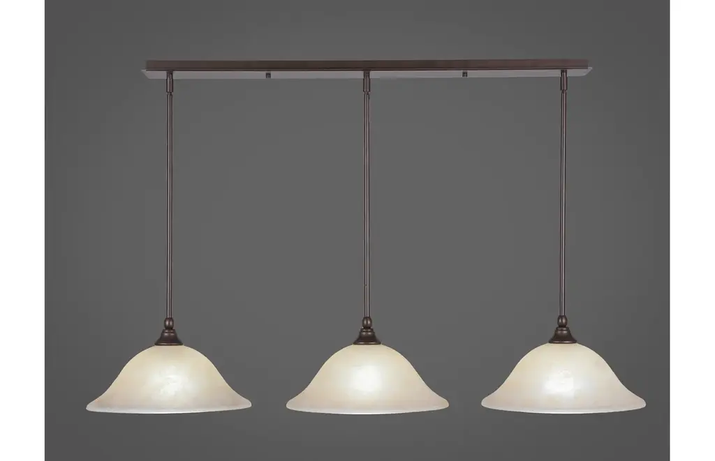 The beauty of our entire product line is the opportunity to create a look all of your own, as we now offer over 40 glass shade choices, with most being available as an option on every lighting family. So, as you can see, your variations are limitless. It really doesn't matter if your project requires Traditional, Transitional, or Contemporary styling, as our fixtures will fit most any decor.3 Light Multi Light Mini Pendant With Hang Straight Swivels Shown In Bronze Finish With 12" Amber Marble GlassComes Standard With: Comes With 1-3" 1-6", 2-12", And 1-18" Stem Sections Per Socket/Hang Straight SwivelWarranty Length: 1 YearType of Bulb: IncandescentBulb Base: MediumLamp Type: MediumBulb Included: NoNumber Of Bulbs Needed: 3Wattage: 100UL/ADA/CUL/CSA: UL/CULUL Application: Ceiling