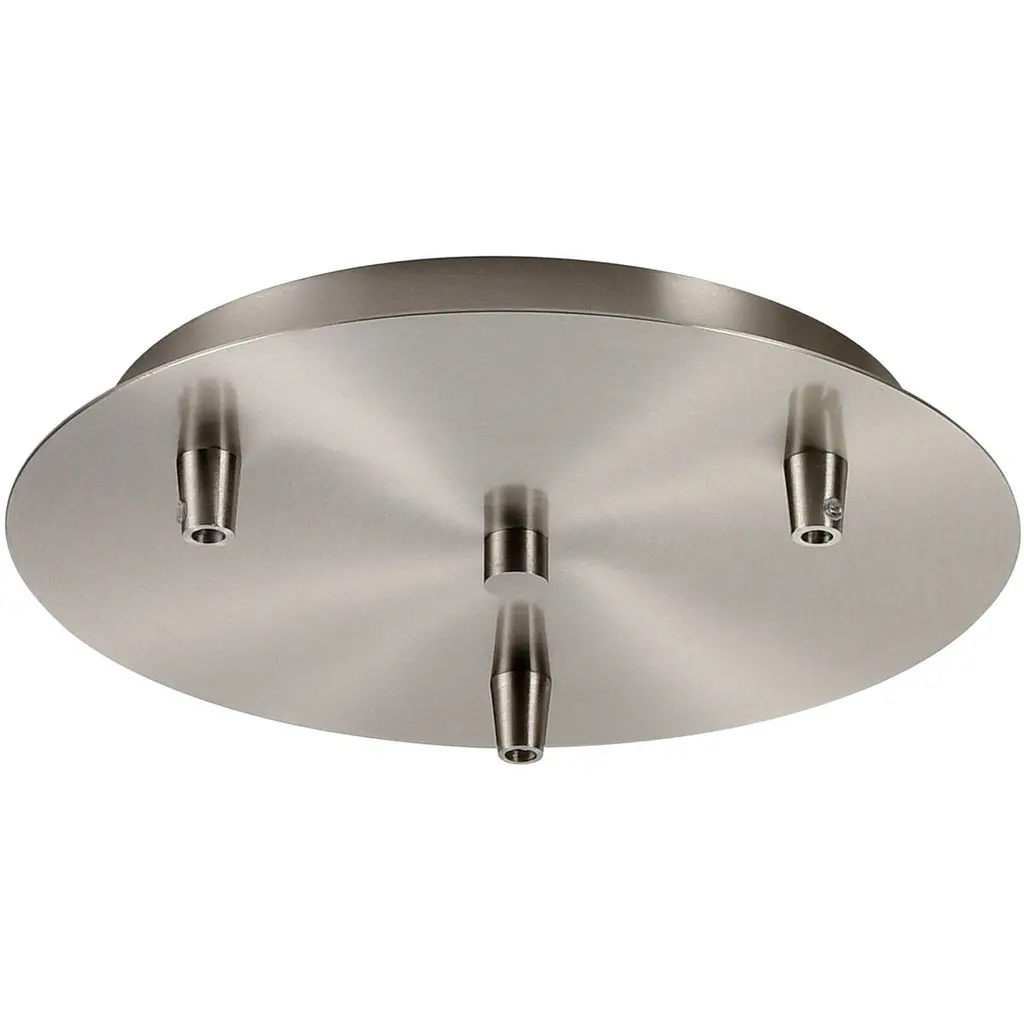 3 Lights Round Canopy Pendants 150w Max With Transformer, Brushed Steel Finish