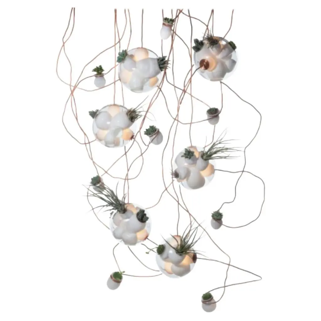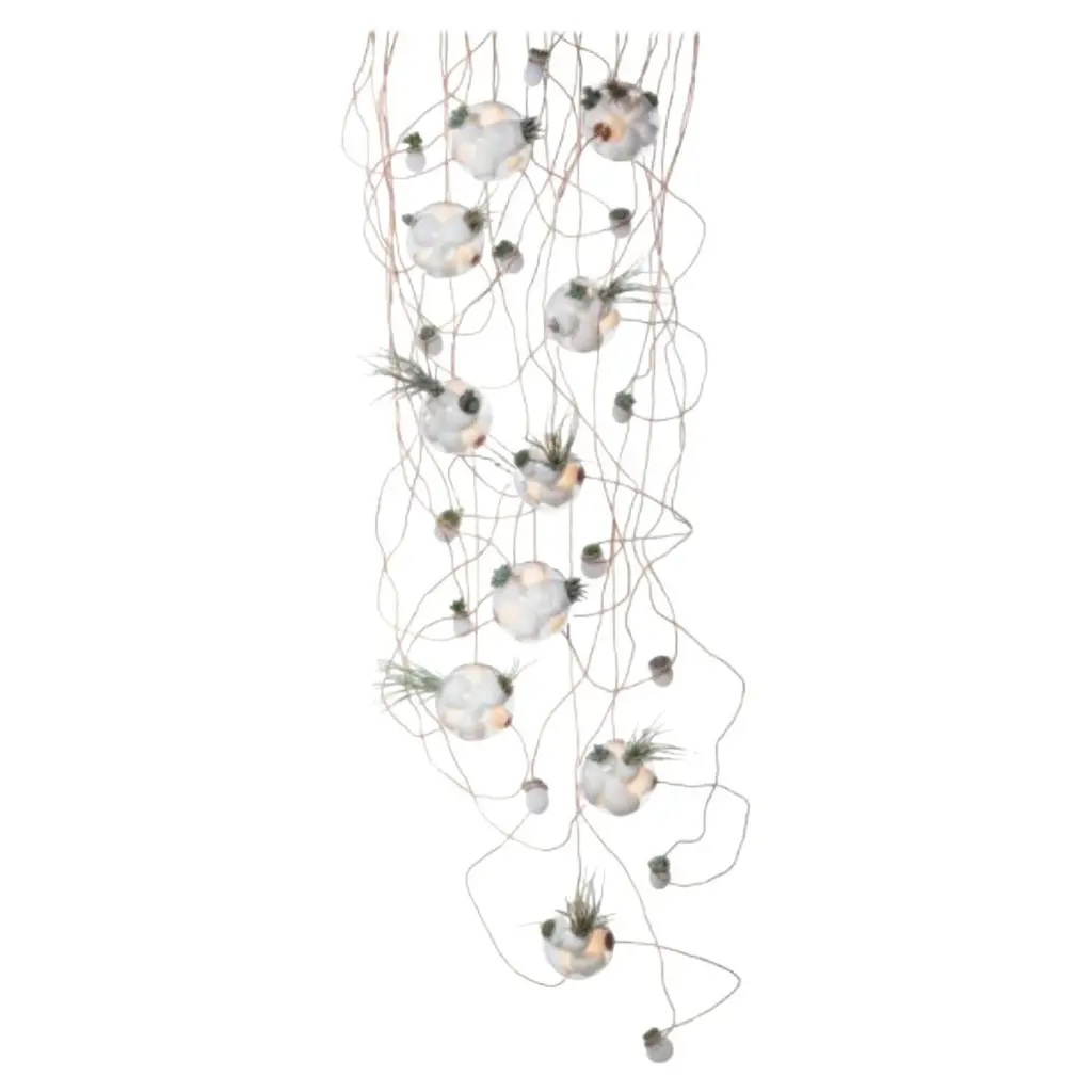 38.11 Pendant by BocciDimensions: D 85 x W 28.4 x H 300 cmMaterials: white powder coated round canopy.Weight: 31 kgAlso Available in different dimensions and models. All our lamps can be wired according to each country. If sold to the USA it will be wired for the USA for instance.38 pushes the fabrication technique originally developed for 28 to its technical and material limits. A large glass sphere is blown with a multitude of haphazard interior cavities, which intersect and collide with each other in unpredictable ways.Bocci is a design and manufacturing company based in Vancouver and Berlin. Founded in 2005 under the creative directorship of Omer Arbel, Bocci is committed to fostering a lateral and open-ended relationship between creative direction and Craft. The company launched with one lighting design, ‘14’, which became an instant Classic and remains a design staple and bestseller. Bocci’s growing portfolio of sculptural lighting is developed, engineered and fabricated in-house, through an infrastructure calibrated to provide full control over technique, quality and scale.In 2015, Bocci transformed a historic Berlin building into a showroom and archive. ‘Bocci 79’ inhabited a 2,200 m² / 23,600 sq ft former courthouse, constructed in 1896, and showcased over a decade of works by Omer Arbel, ranging from pieces in progress, prototypes and ideas, to the complete range of catalogue pieces developed for Bocci.