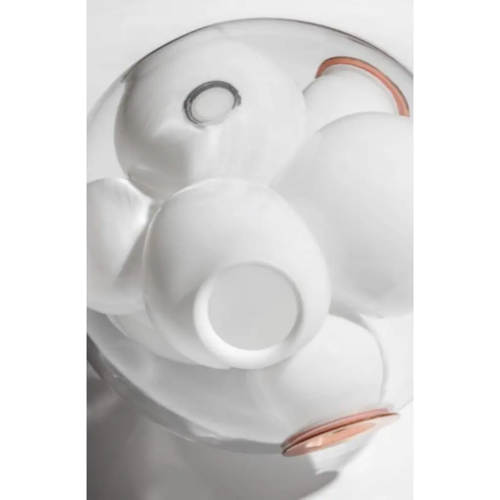 38.28 Pendant by BocciDimensions: D 132 x W 44.4 x H 300 cmMaterials: white powder coated round canopy.Weight: 75 kgAlso available in different dimensions and models.All our lamps can be wired according to each country. If sold to the USA it will be wired for the USA for instance.38 pushes the fabrication technique originally developed for 28 to its technical and material limits. A large glass sphere is blown with a multitude of haphazard interior cavities, which intersect and collide with each other in unpredictable ways.Bocci is a design and manufacturing company based in Vancouver and Berlin. Founded in 2005 under the creative directorship of Omer Arbel, Bocci is committed to fostering a lateral and open-ended relationship between creative direction and craft. The company launched with one lighting design, ‘14’, which became an instant classic and remains a design staple and bestseller. Bocci’s growing portfolio of sculptural lighting is developed, engineered and fabricated in-house, through an infrastructure calibrated to provide full control over technique, quality and scale.In 2015, Bocci transformed a historic Berlin building into a showroom and archive. ‘Bocci 79’ inhabited a 2,200 m² / 23,600 sq ft former courthouse, constructed in 1896, and showcased over a decade of works by Omer Arbel, ranging from pieces in progress, prototypes and ideas, to the complete range of catalogue pieces developed for Bocci.