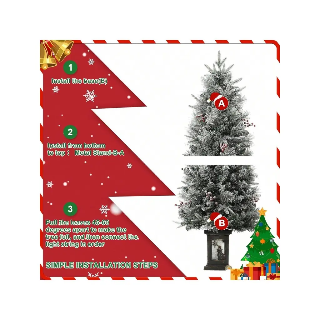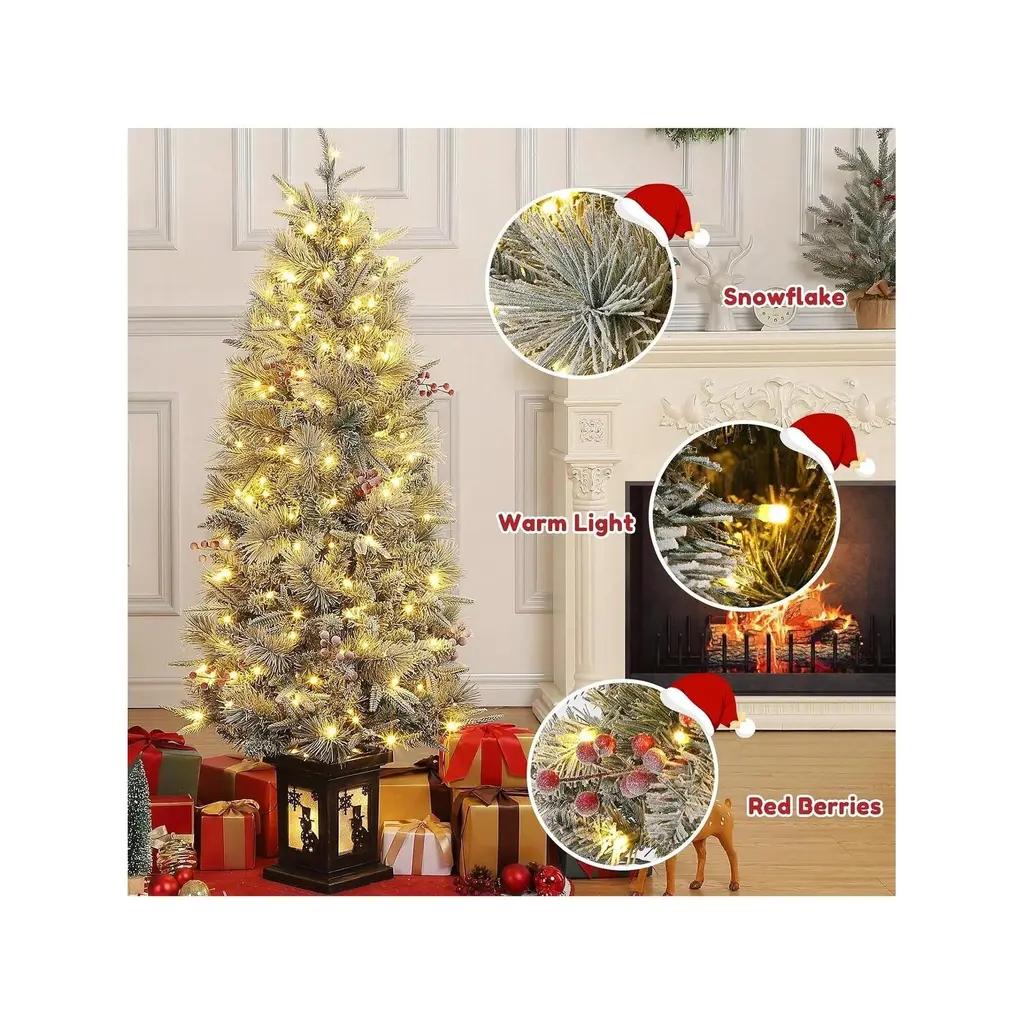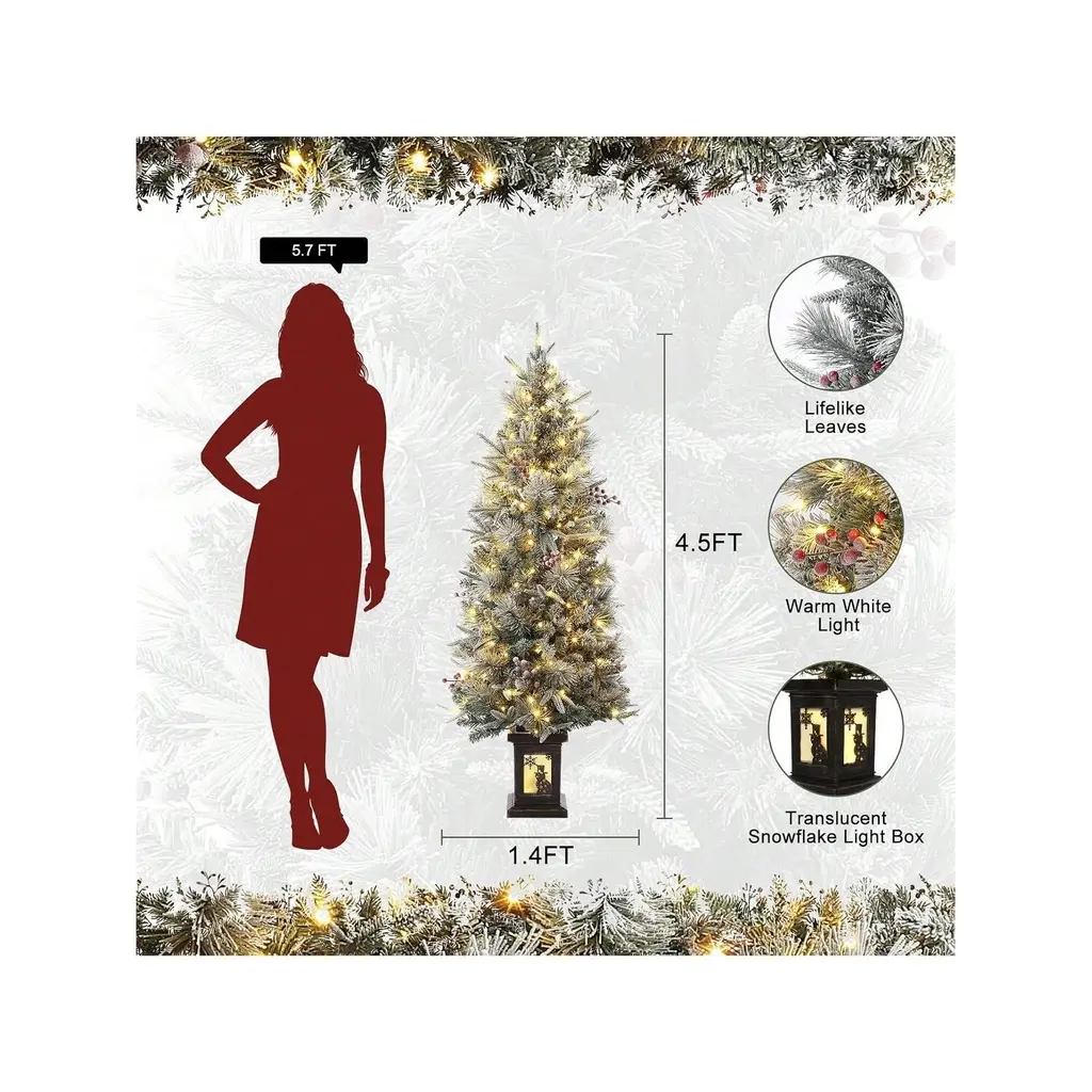 Luxurious appearance: 4.5-foot pre-installed artificial Christmas tree with 251 lush branch tips and 20 strings of red berries, creating a joyful holiday atmosphere, with an elegant translucent snowman base and star lights.Pre-installed lights: 200 warm white LED lights, soft light, saving the time of hanging lights, quickly creating a comfortable atmosphere.Lighting mode: With 8 dynamic lighting modes, 2700K LED lights can continue to light up even if one light is off, equipped with a timer, automatically lighting up for 6 hours and turning off for 18 hours.Safe materials: Made of high-quality PVC, PE and cedar needles, flame retardant, odorless, non-allergenic, durable and anti-fading.Multi-scene application: suitable for home, office, store, etc., adding festive atmosphere, also a good gift.