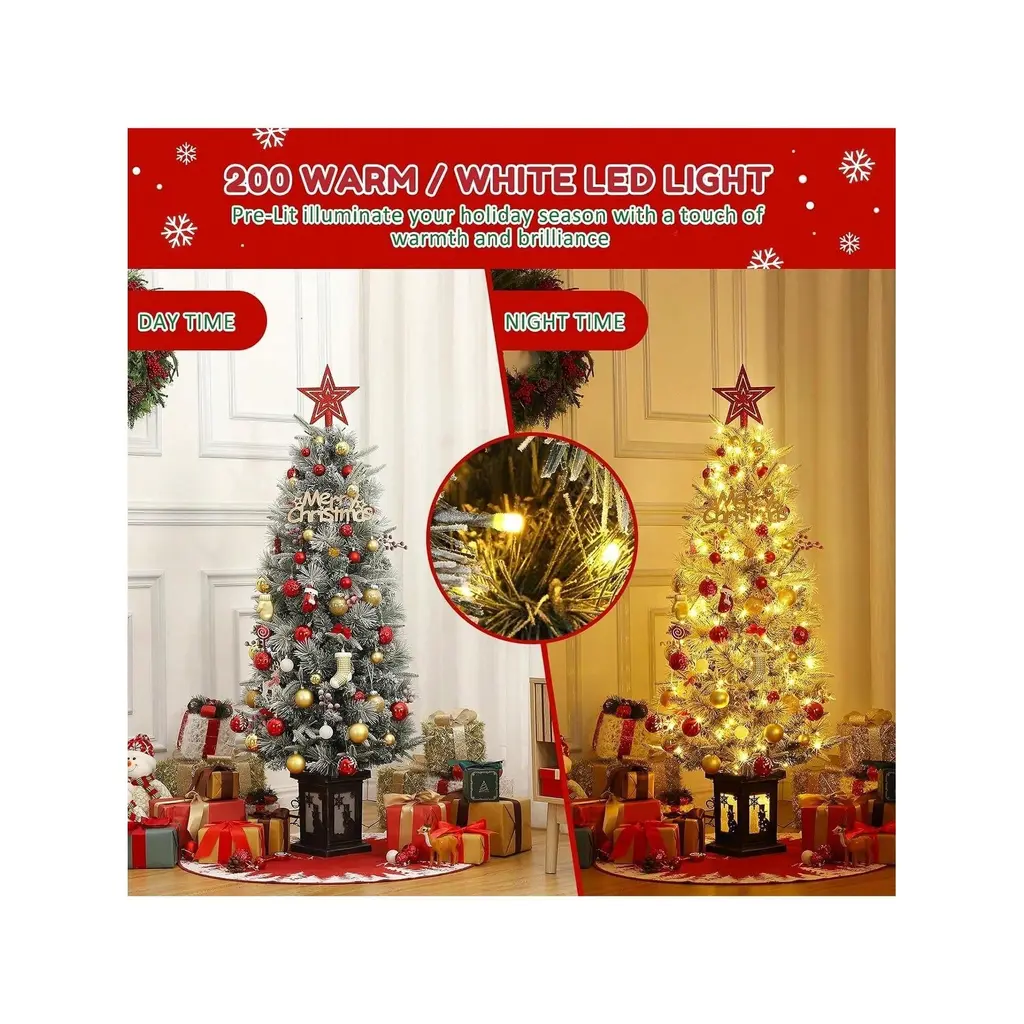 4.5ft Faux Frost Christmas Tree, 200 Led Lights - 4.5 Foot