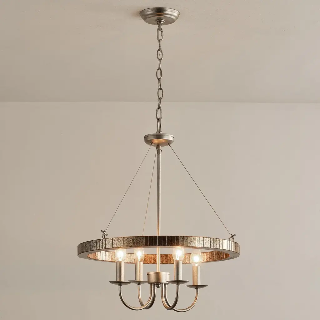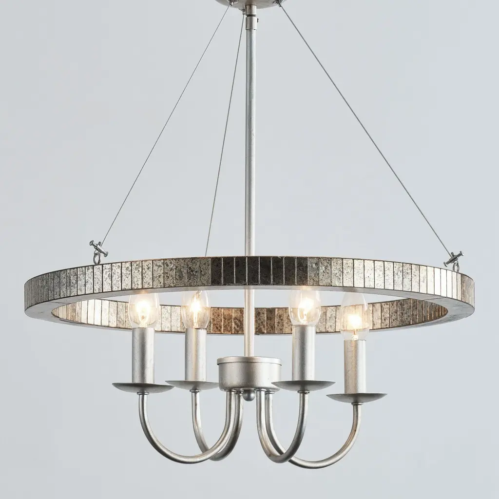 This statement chandelier defines your space with its classic design and ethereal glow. Evenly spaced acrylic lens ring coupled with 4 candle-shaped bulbs, a perfect harmony of artistic elegance and sophistication, adding brilliance to your space with its timeless design and contemporary style. It can also meet your daily lighting needs.