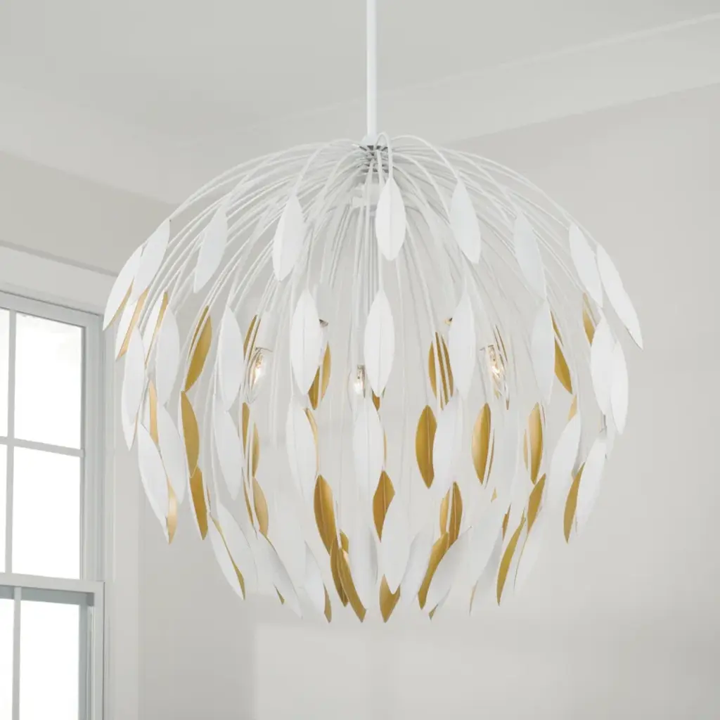 Invite glamour to any space with the Margeaux large pendant. Layers of cascading leaves create decadent dimension, while the finishes with buffed interior invite glimmering intrigue from every angle.