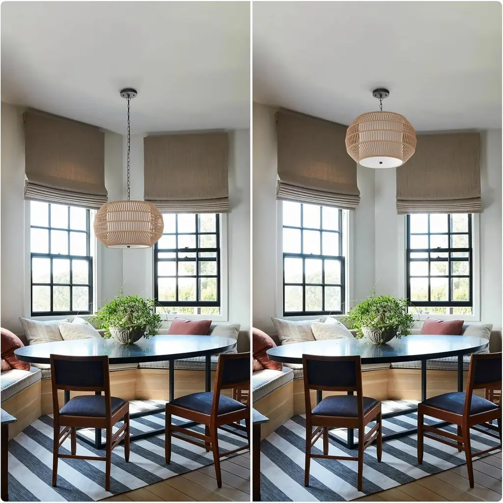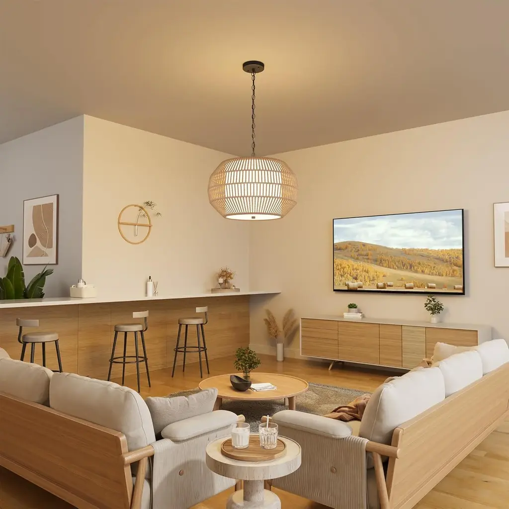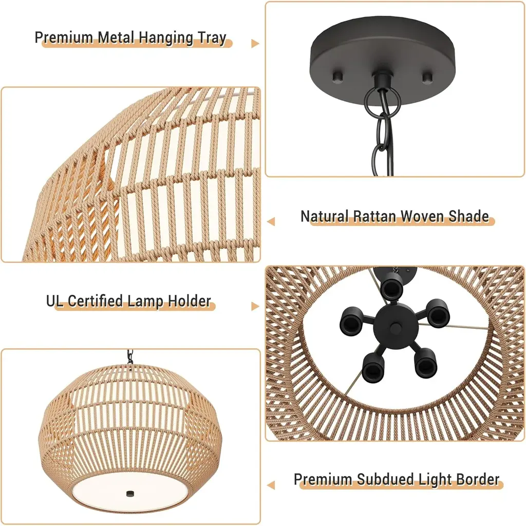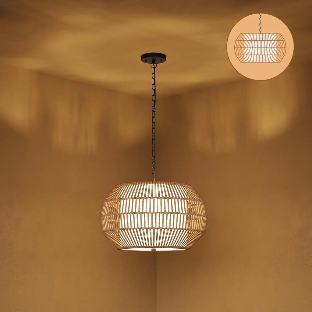 5-Lights Large Pendant Light Rattan Farmhouse Chandelier Light Fixtures - Brown