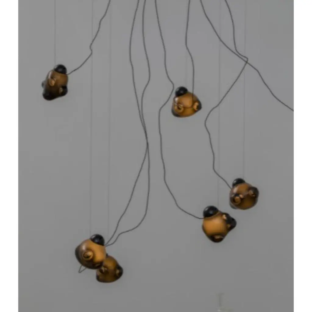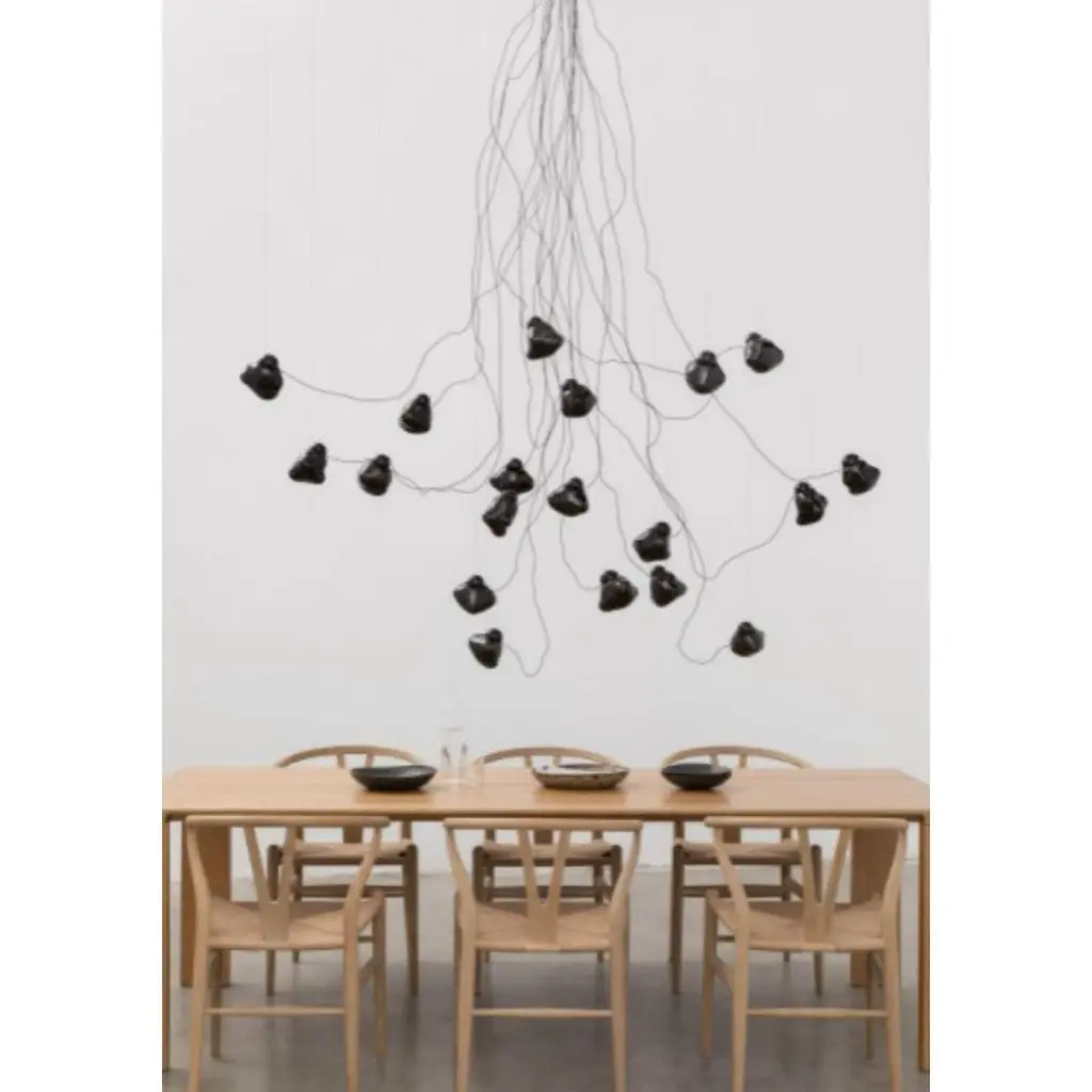 57.19 Pendant by BocciDimensions: D 50.1 x H 300 cmMaterials: Nineteen grey or white opaline pendants, white powder coated round canopy.Weight: 35 kgAlso available in different dimensions and colours. All our lamps can be wired according to each country. If sold to the USA it will be wired for the USA for instance.57 results from a fabrication process whereby air voids of different sizes and configurations are composed within a larger mass of dark grey or white opaline glass. These air pockets are invisible when the piece is unlit, and come alive to reveal an interior universe when 57 is illuminated. By virtue of the method of making, each 57 is completely unique.Bocci is a design and manufacturing company based in Vancouver and Berlin. Founded in 2005 under the creative directorship of Omer Arbel, Bocci is committed to fostering a lateral and open-ended relationship between creative direction and craft. The company launched with one lighting design, ‘14’, which became an instant classic and remains a design staple and bestseller. Bocci’s growing portfolio of sculptural lighting is developed, engineered and fabricated in-house, through an infrastructure calibrated to provide full control over technique, quality and scale.In 2015, Bocci transformed a historic Berlin building into a showroom and archive. ‘Bocci 79’ inhabited a 2,200 m² / 23,600 sq ft former courthouse, constructed in 1896, and showcased over a decade of works by Omer Arbel, ranging from pieces in progress, prototypes and ideas, to the complete range of catalogue pieces developed for Bocci.