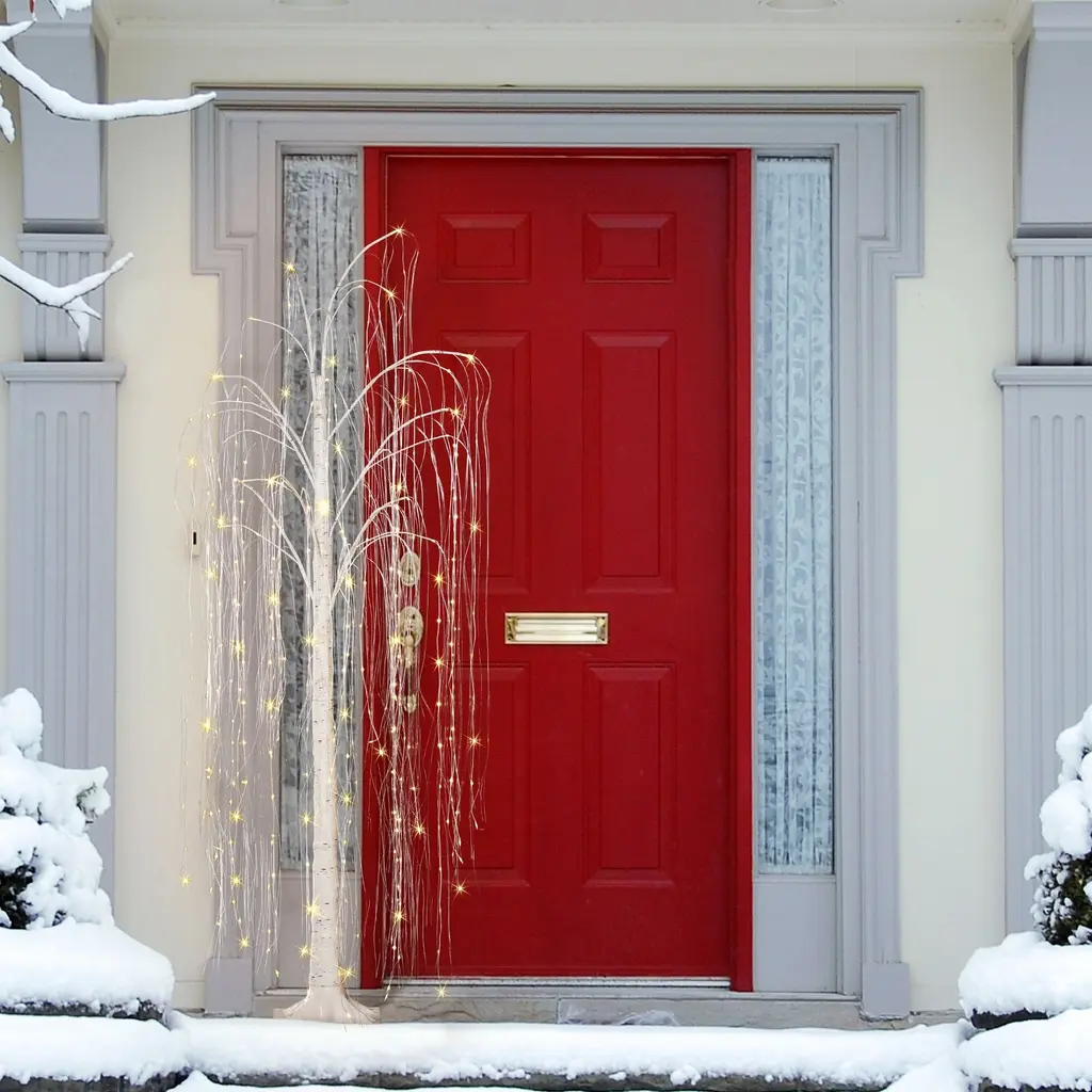 6' Multi Function Artificial Christmas Willow Tree Warm White Led - 6 Foot - White - 6 Foot