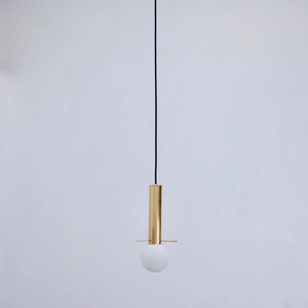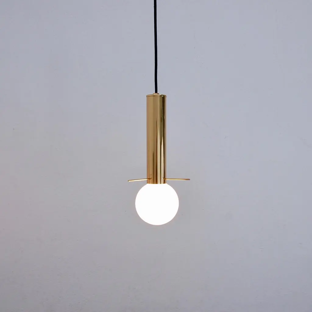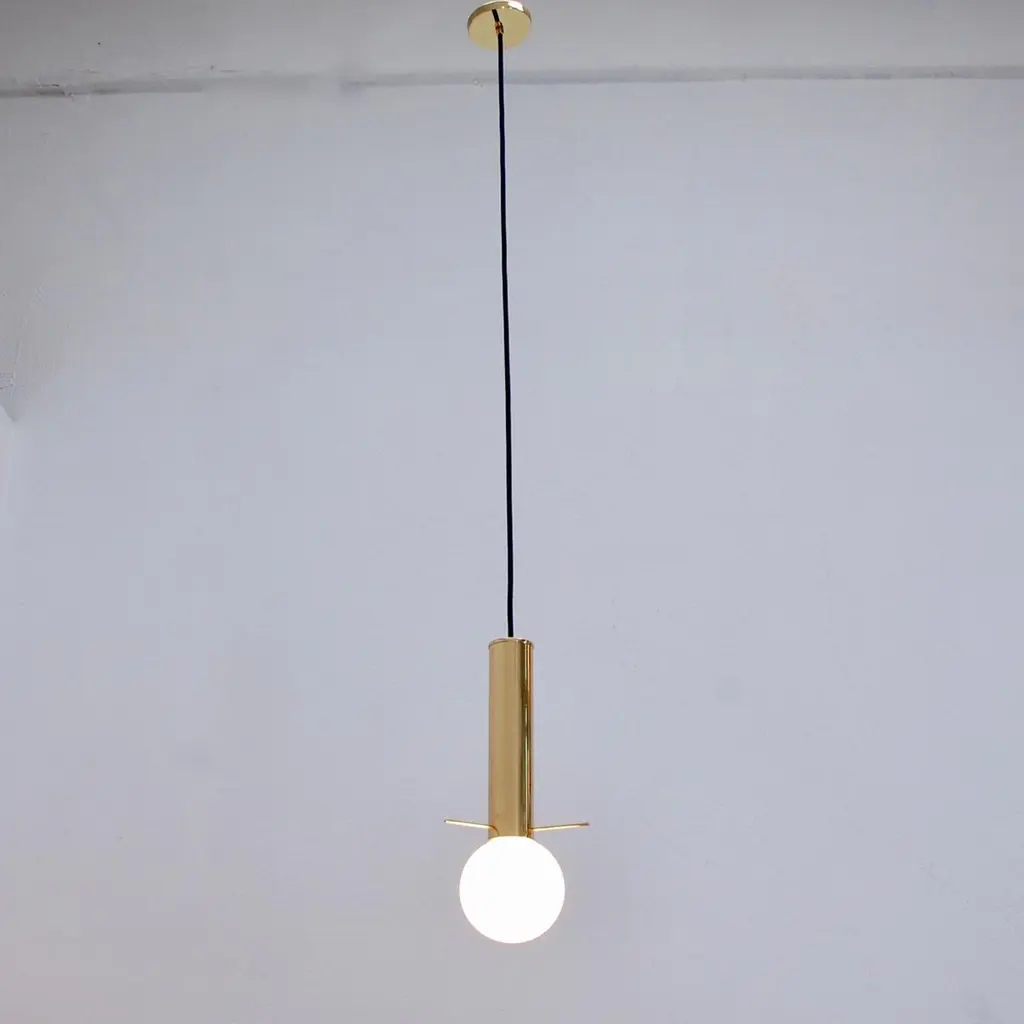 (7) Of the period American 1960s brass pendants with G40 LED bulbs and tri-pin detailing. Fully restored. Wired for the US with a single E26 based socket. Light bulb included with order. Overall drop adjustable upon request. Sold individually.Measurements:OAD: 55”Fixture height: 14.75” with bulbDiameter: 7”.